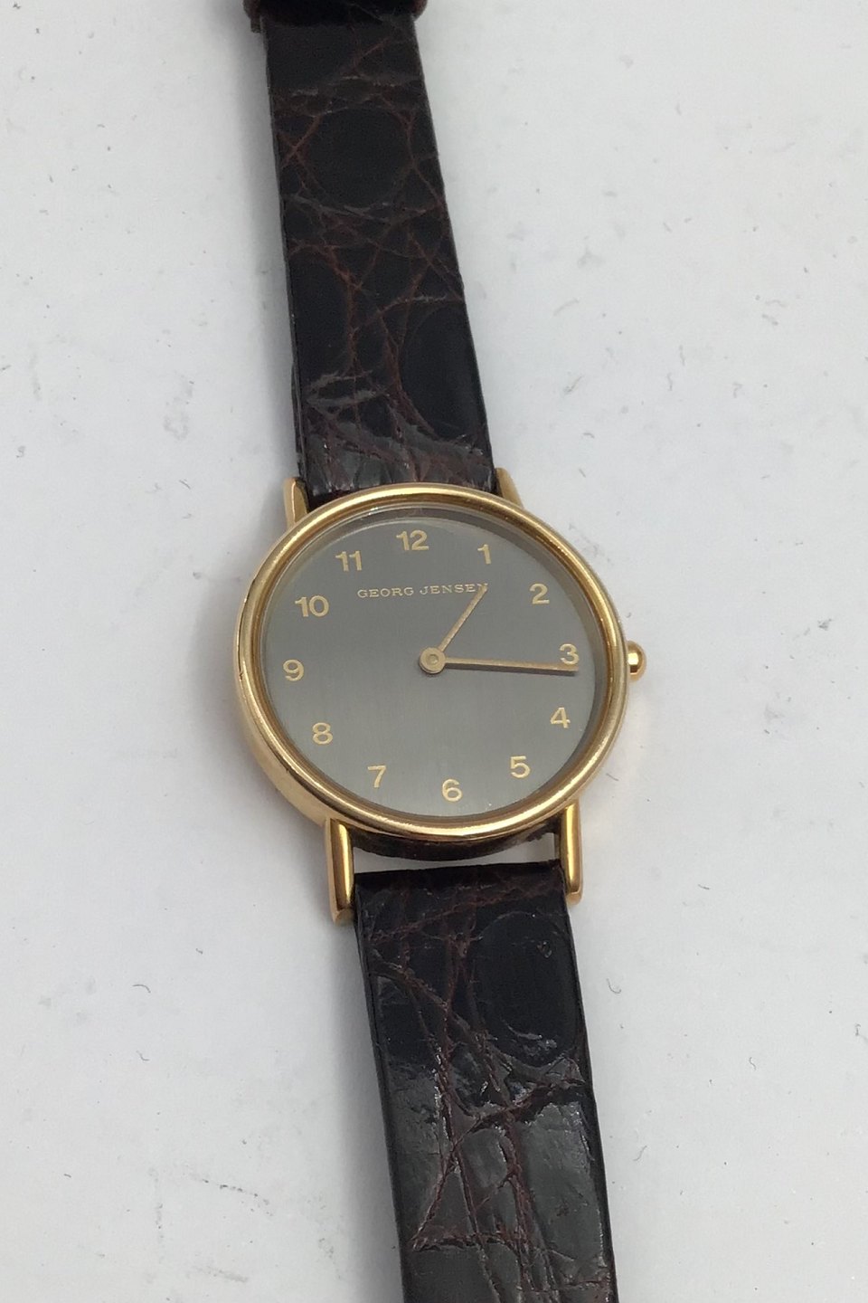 Georg Jensen Gold-plated Quartz Wrist Watch No. 350 Jørgen Møller Measures Diam. 2.8 cm (1.10 inch) Original Georg Jensen band