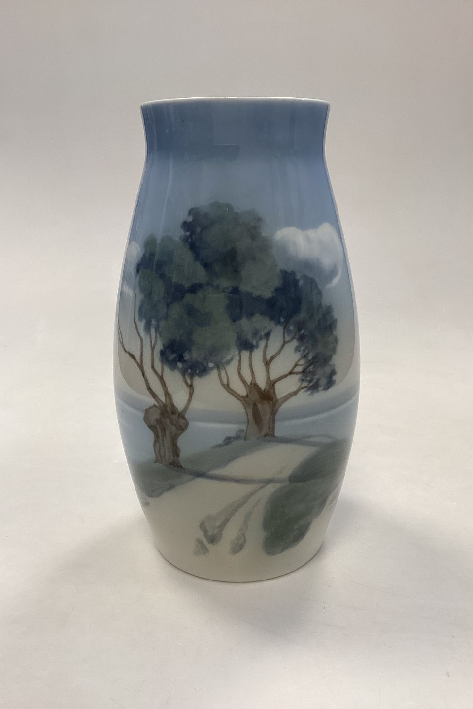 Bing og Grøndahl Vase - Træer ved vejen No. 576/5247. Måler 22,5 cm / 8,85 in.