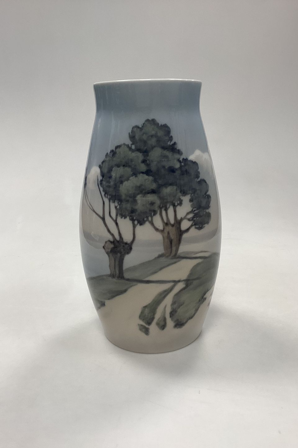 Bing and Grondahl Vase - Trees by the road No. 8676/247. Oval opening. Strong contour in the motif. Measures 22.5 cm / 8.85 in.