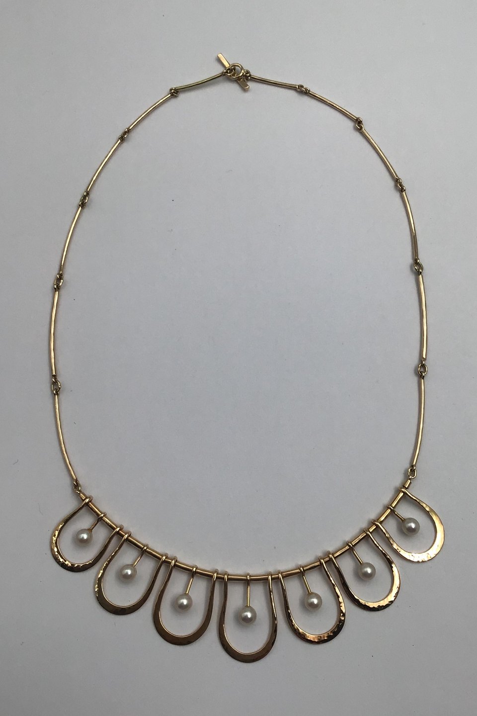 Bent Gabrielsen 14 ct Gold Necklace with Pearls Measures 44 cm (17.32 inch) Weight 21 gr (0.74 oz)