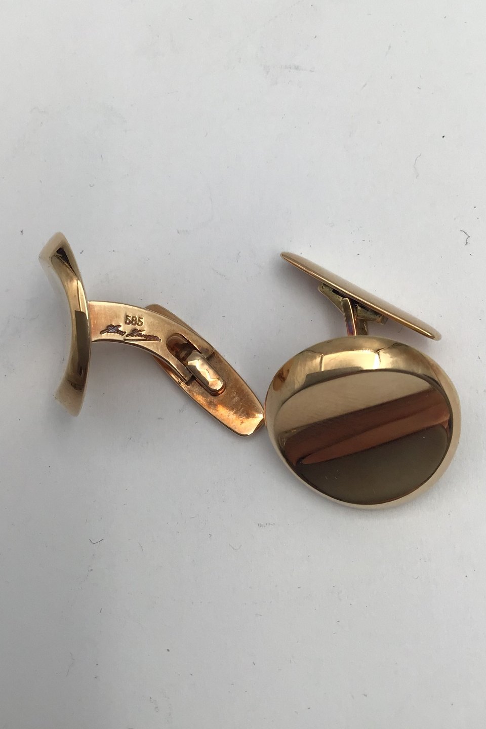 Hans Hansen 14K Gold Cuff Links Measures Diam 2 cm (0.78 inch) Combined Weight 14.5 gr (0.51 oz)