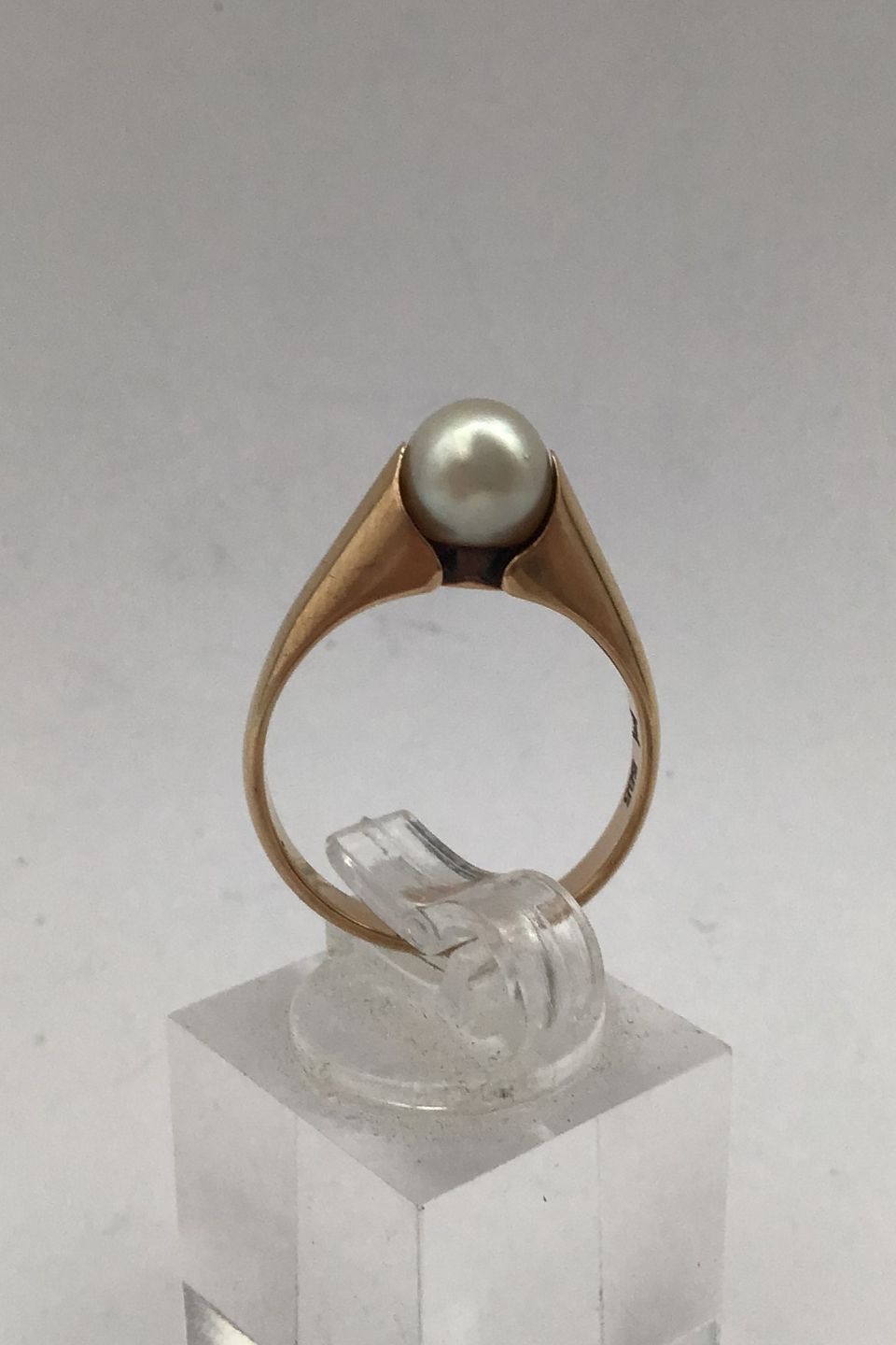 Hans Hansen 14K Guld Ring med Perle Måler Ring Str. 55 (US 7 1/4) Vægt 3.7 gr (0.13 oz)