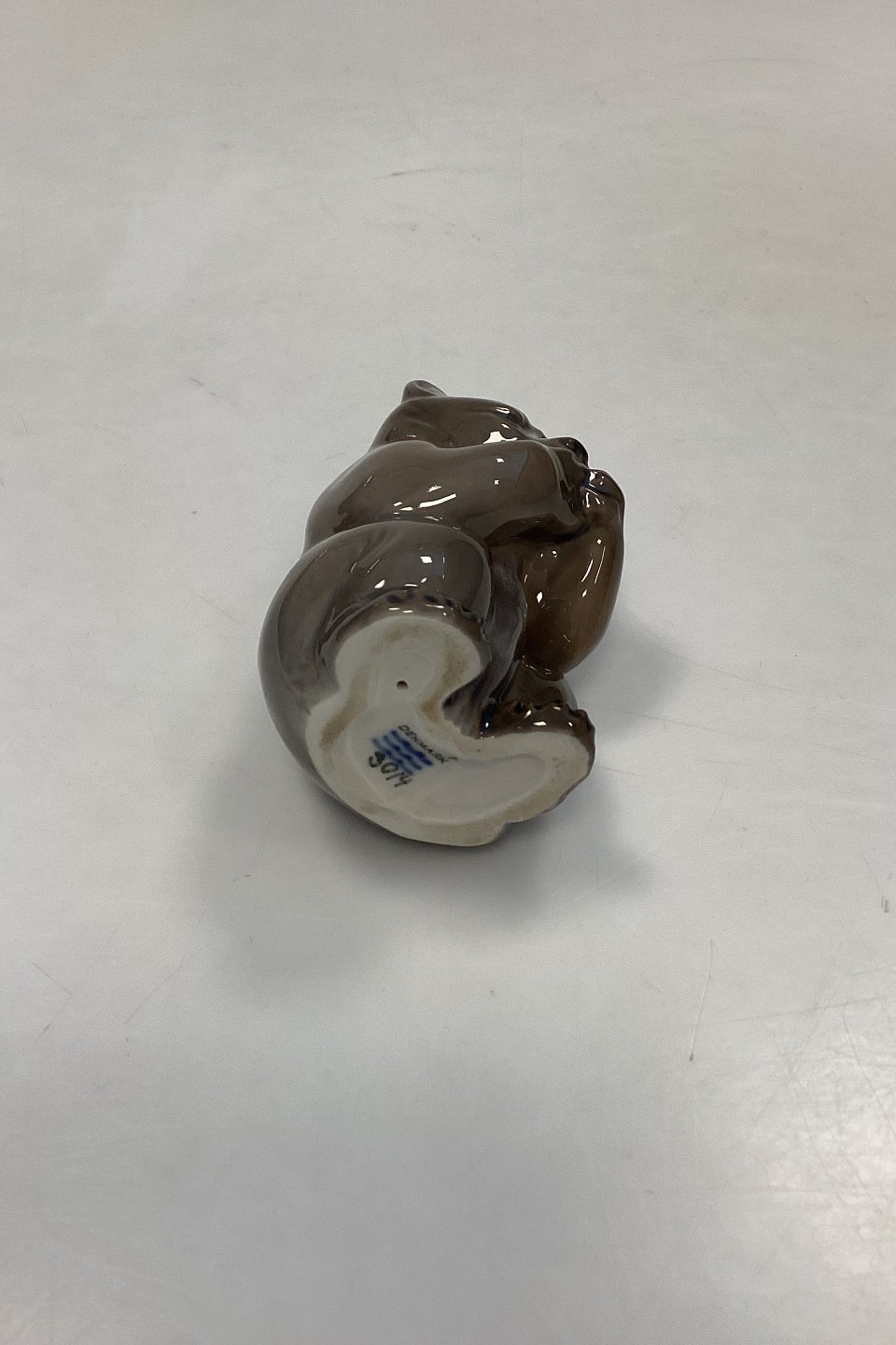 Royal Copenhagen Figurine of Bear Cub No. 3014. Designed by Knud Kyhn. Measures 9 cm / 3.54 in. Greyish brown shades.