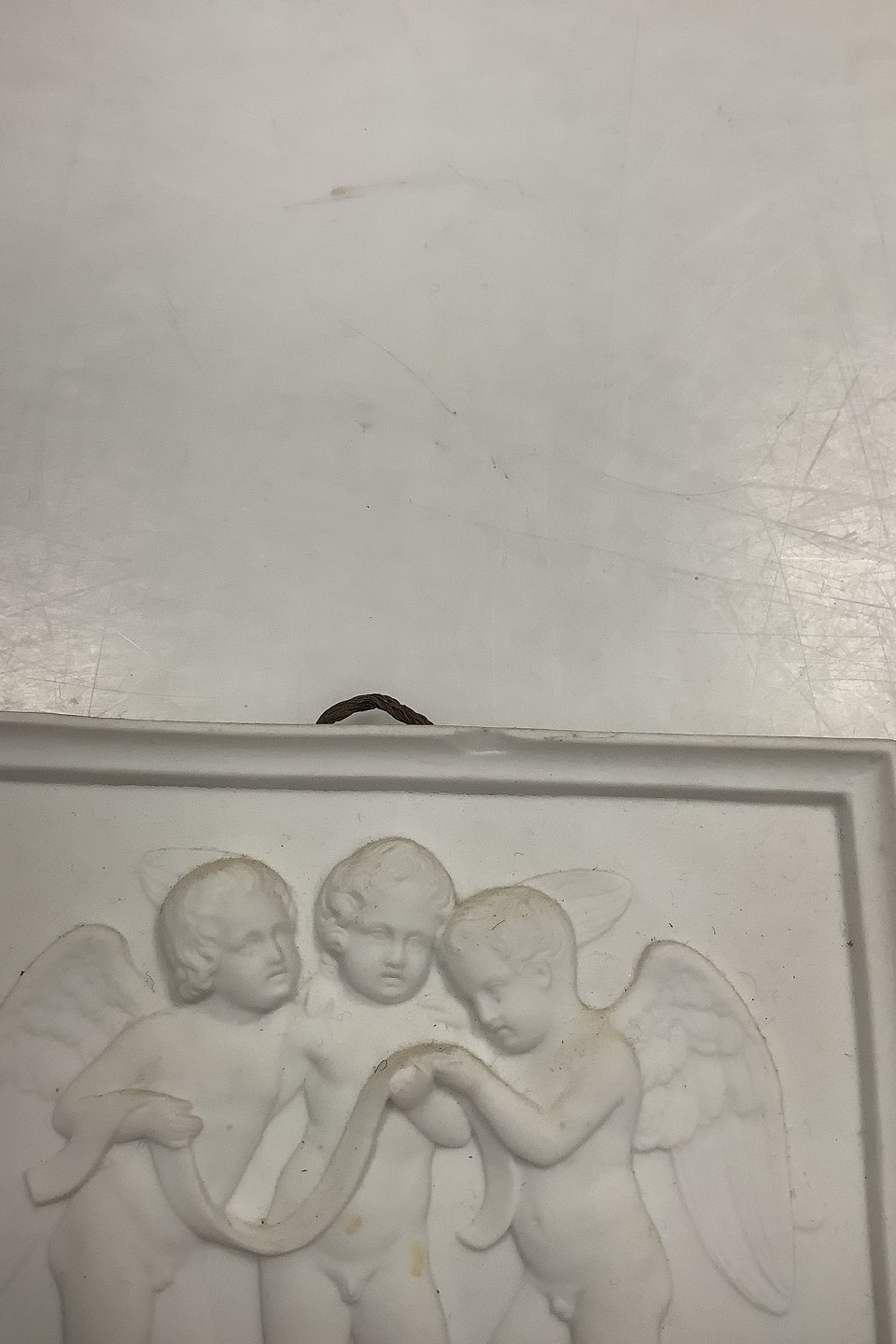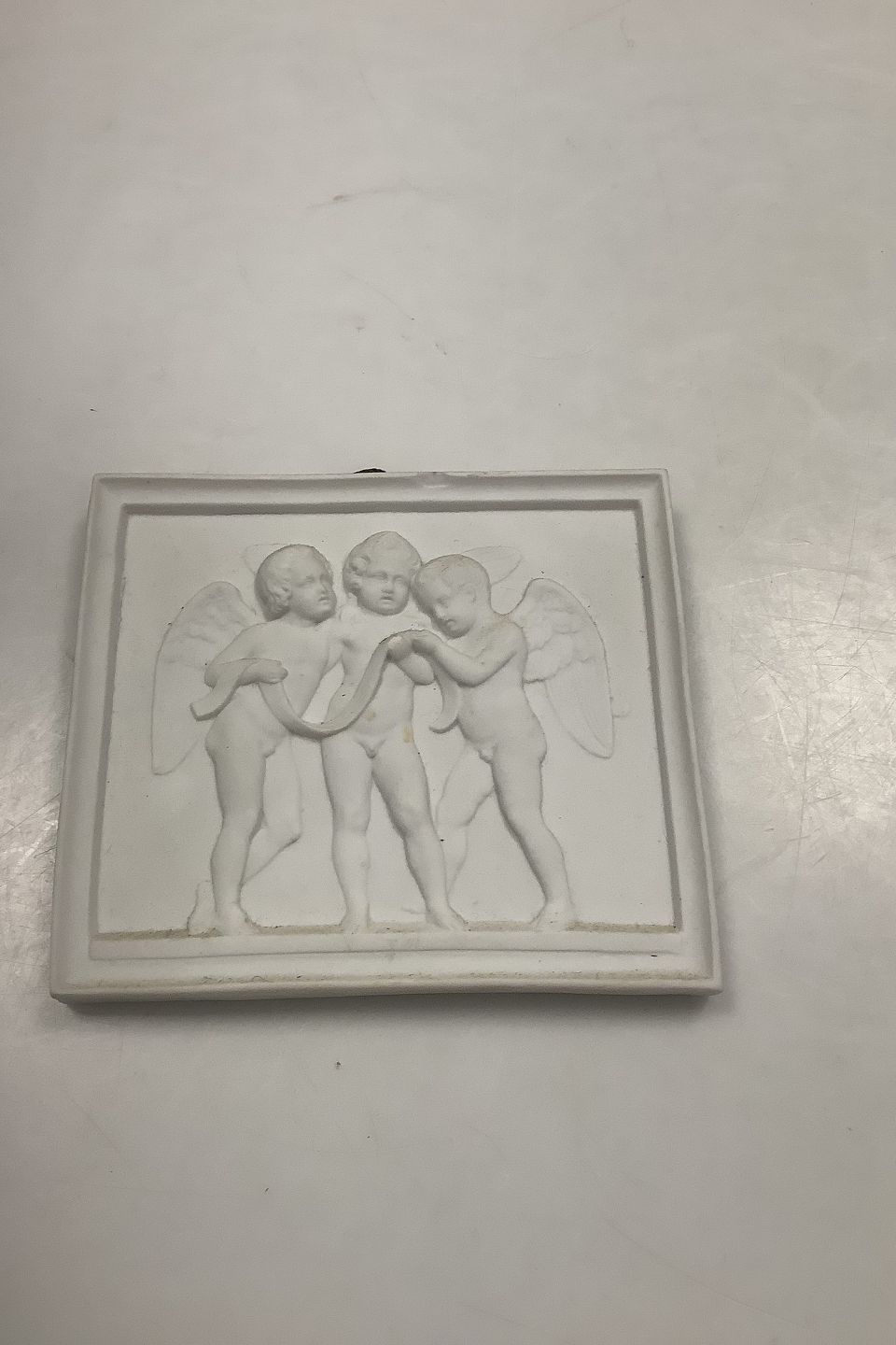 Bertel Thorvaldsen, Royal Copenhagen Biscuit "Singing Angels". Copy of relief modeled in Rome in 11833. Measures 10.7 cm / 4 7/32 in. x 12.2 cm / 4 51/64 in. Chips on top edge