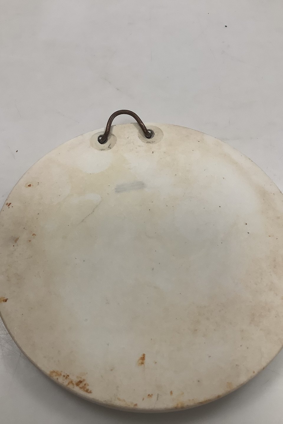 Royal Copenhagen bisquit plate: Woman with two children. Made around 1900. Measures: 10 cm (3.93 inches).
