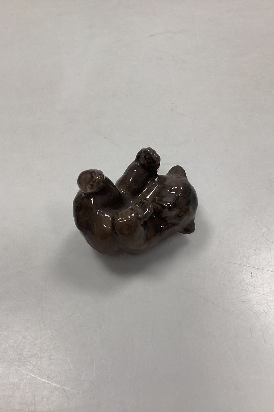 Royal Copenhagen Figurine Bear Cub No. 1124. Designed by Knud Kyhn. Dark greyish-brown colour. 1st Quality.
