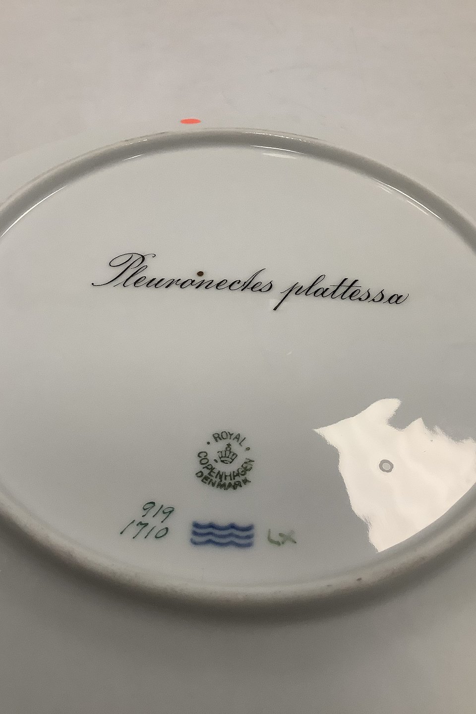 Royal Copenhagen Green Dinner Fish Plate No 919/1710 with Pleuronectes plattessa
