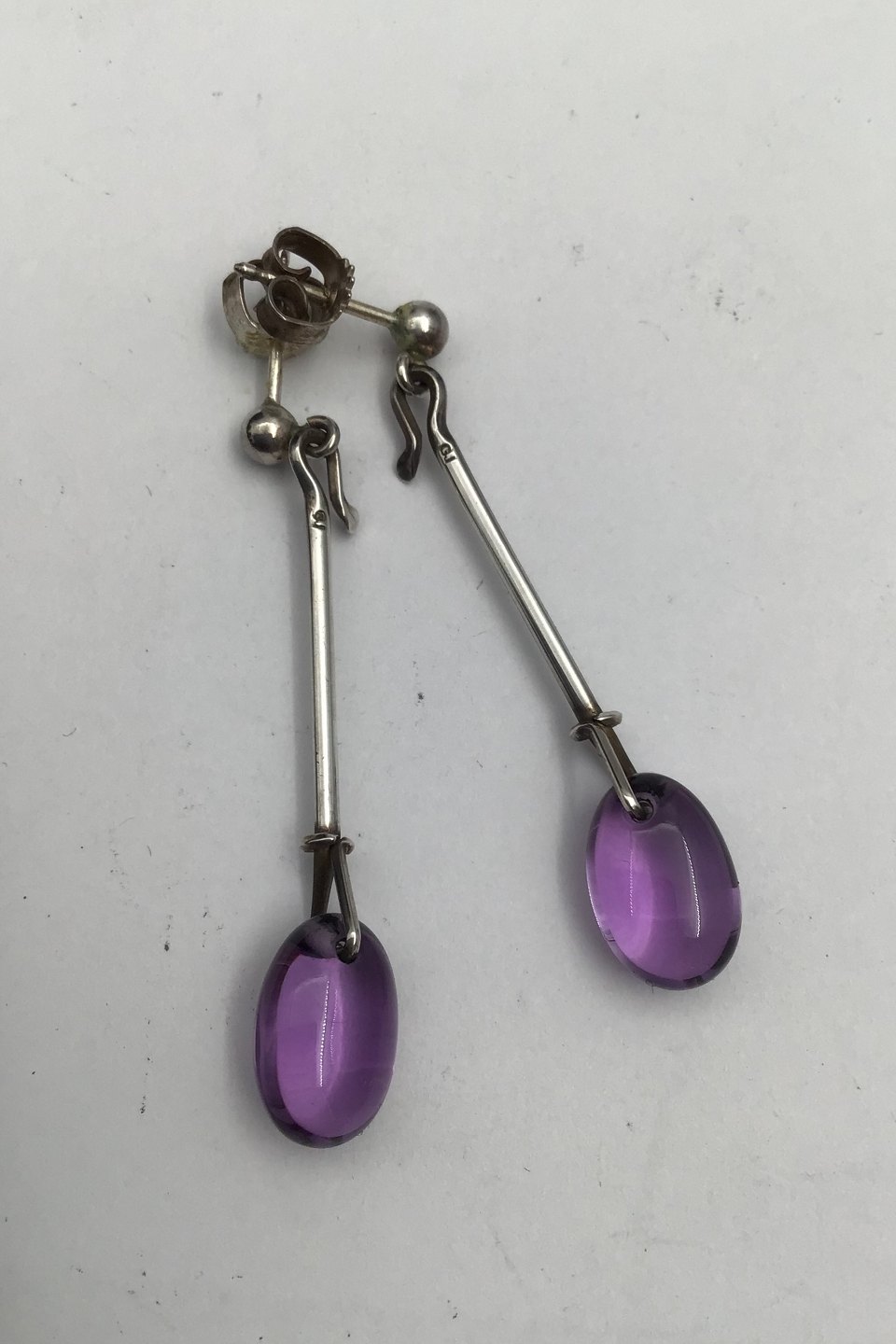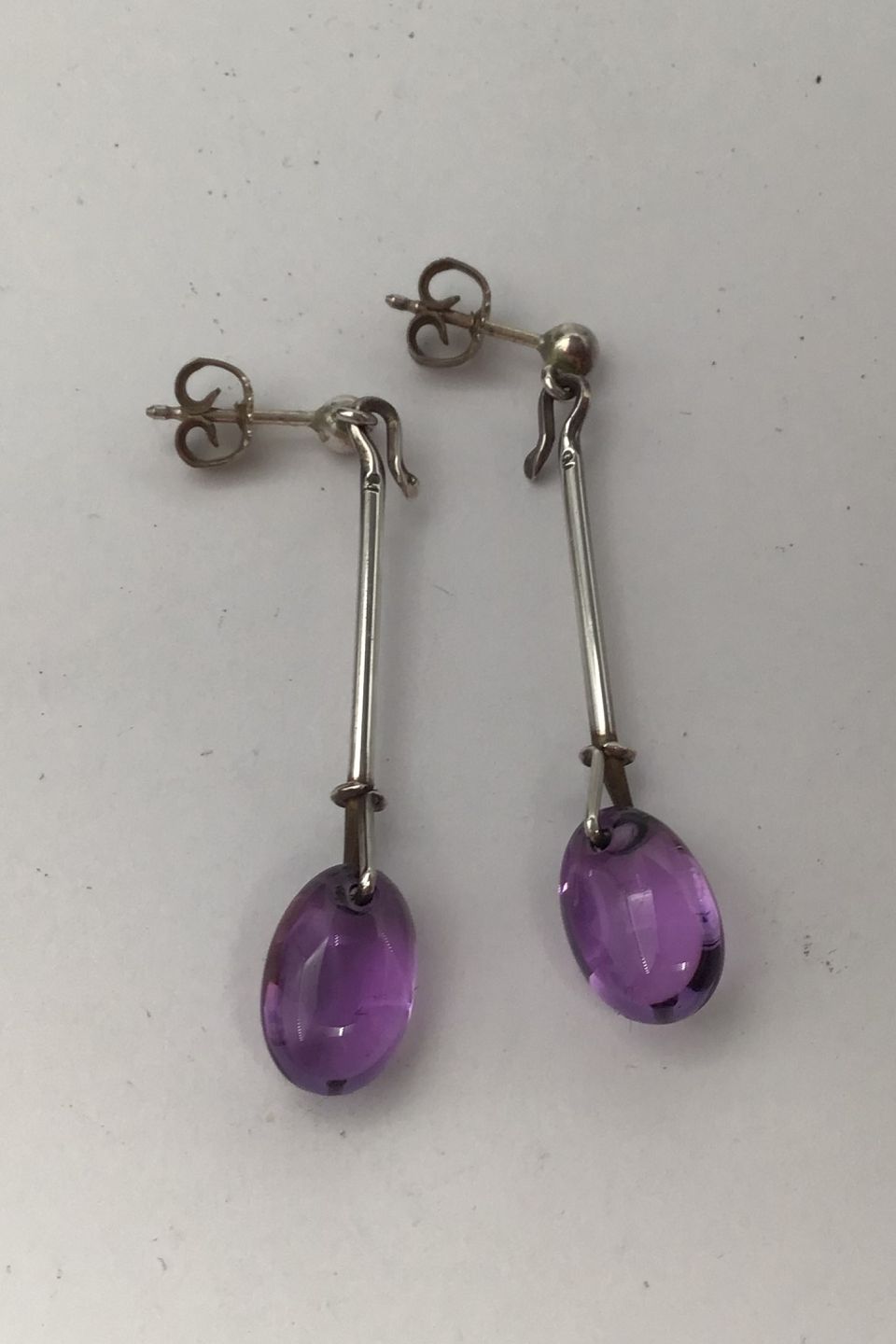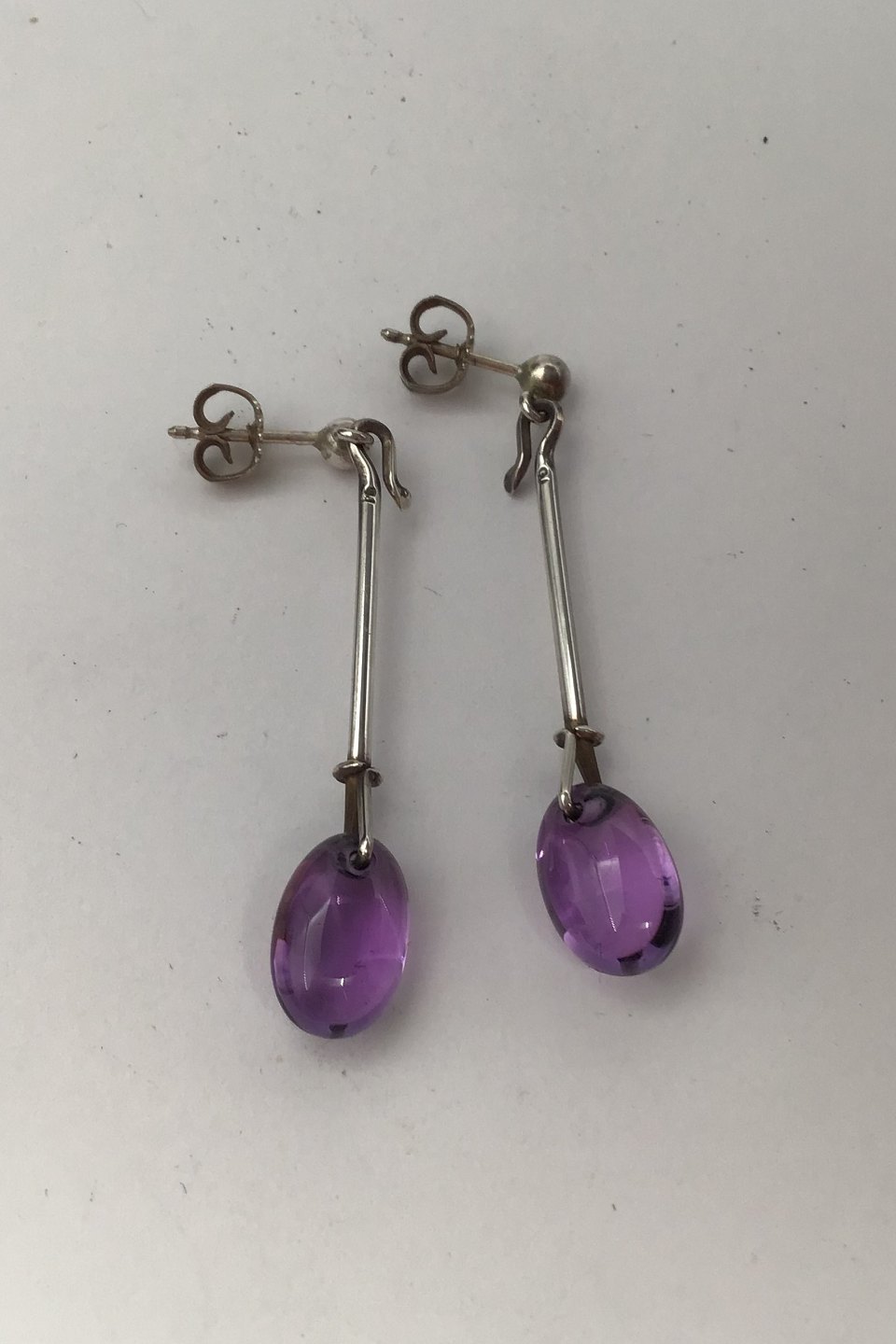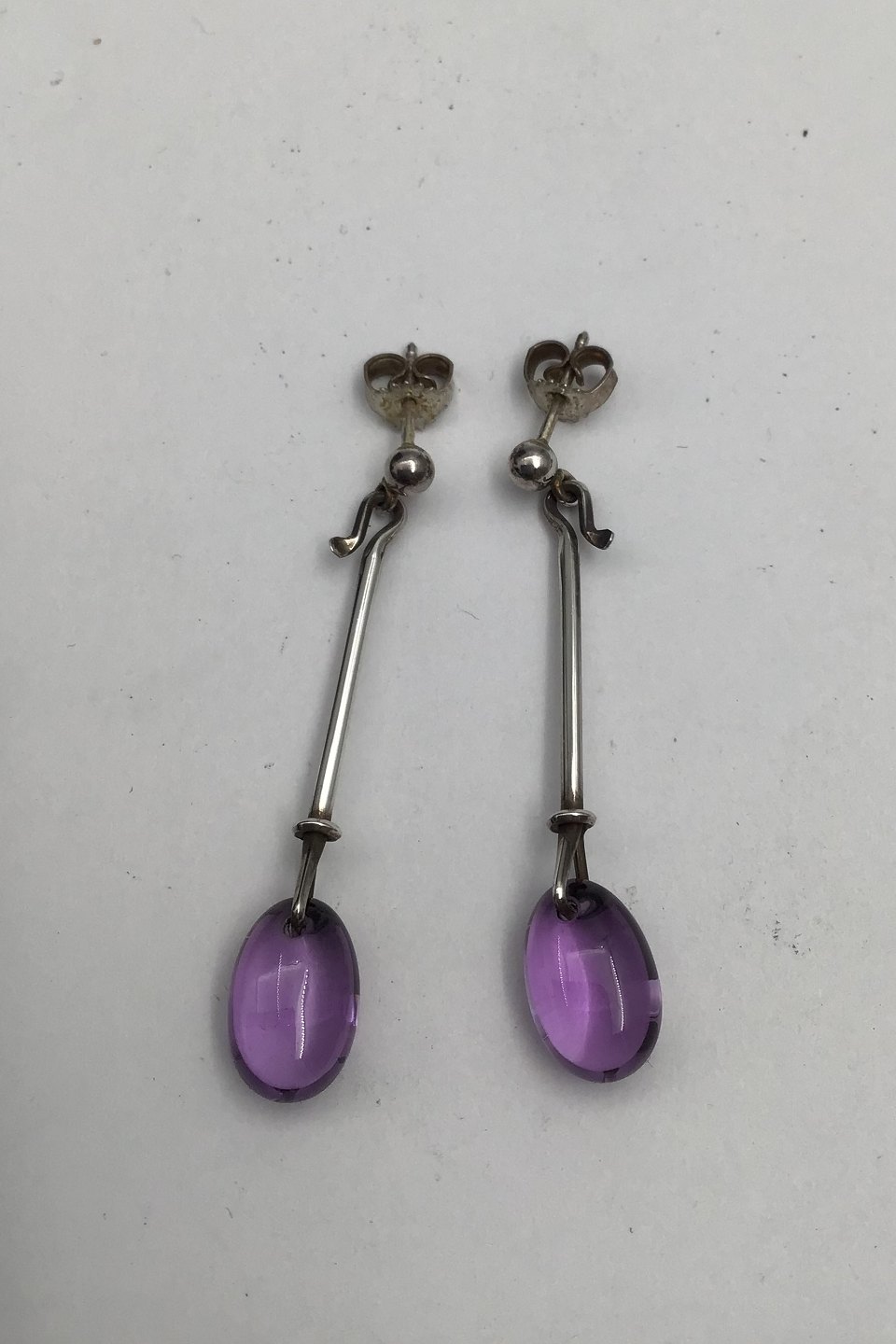 Georg Jensen Sterling Silver Earrings (studs) Dew Drop Amethyst Measures 4.5 cm (1.77 inch) Combined Weight 3.5 gr (0.12 oz)