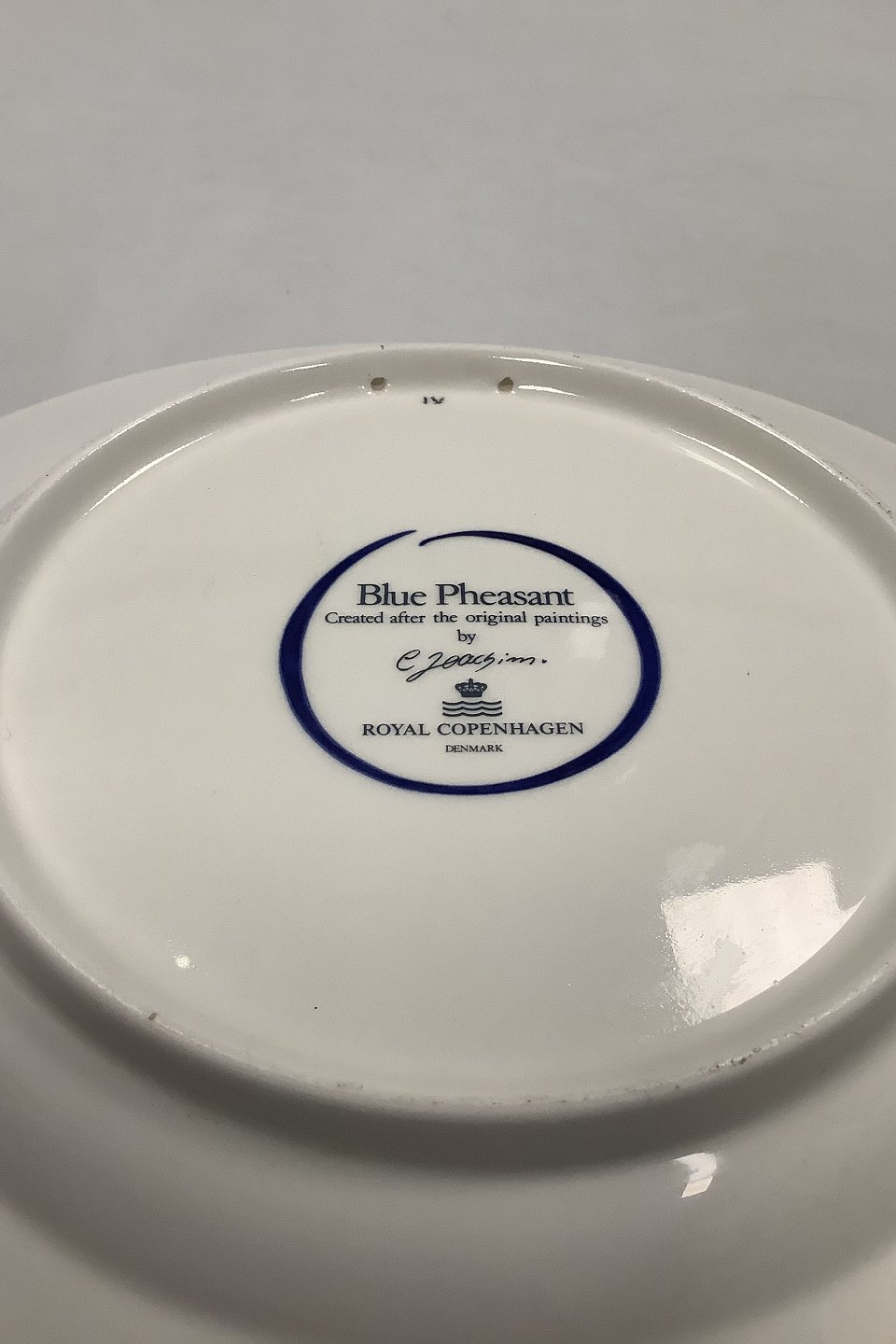 Blue Pheasant is a faience dinnerware service. The decoration dates back to the early 20th century when people appreciated and cherished nature, just as the present generation does now. The decoration was created by Christian Joachim (1870-1943), he was the artistic driving force in the renewal of Danish faience around the turn of the century. Danish faience has become a treasured cultural heritage, characterized by generous, sweeping shapes and liberally applied decorations in exuberant colors. In 1990 Royal Copenhagen reproduced the decoration to a dinner service. Blue Pheasant is dominated by an imaginary bird in blue and yellow in a style that is very characteristic of Joachim's work. Faience is fired at rather low temperatures, and this makes it possible to use many different colors. The fine faience glaze produces a special dept of color and refraction that give the colors intensity and luster.