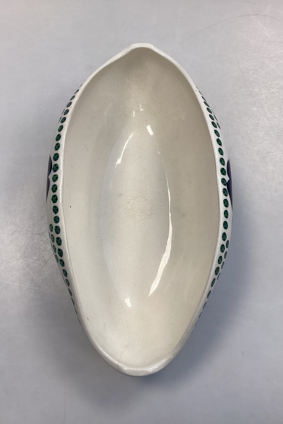 Aluminia Jardiniere No. 223/115. Measures 30 cm x 10.5 cm / 11.81 in. x 4.13 in. Hairline crack at the top end and discolored spot on the inside (see photos)