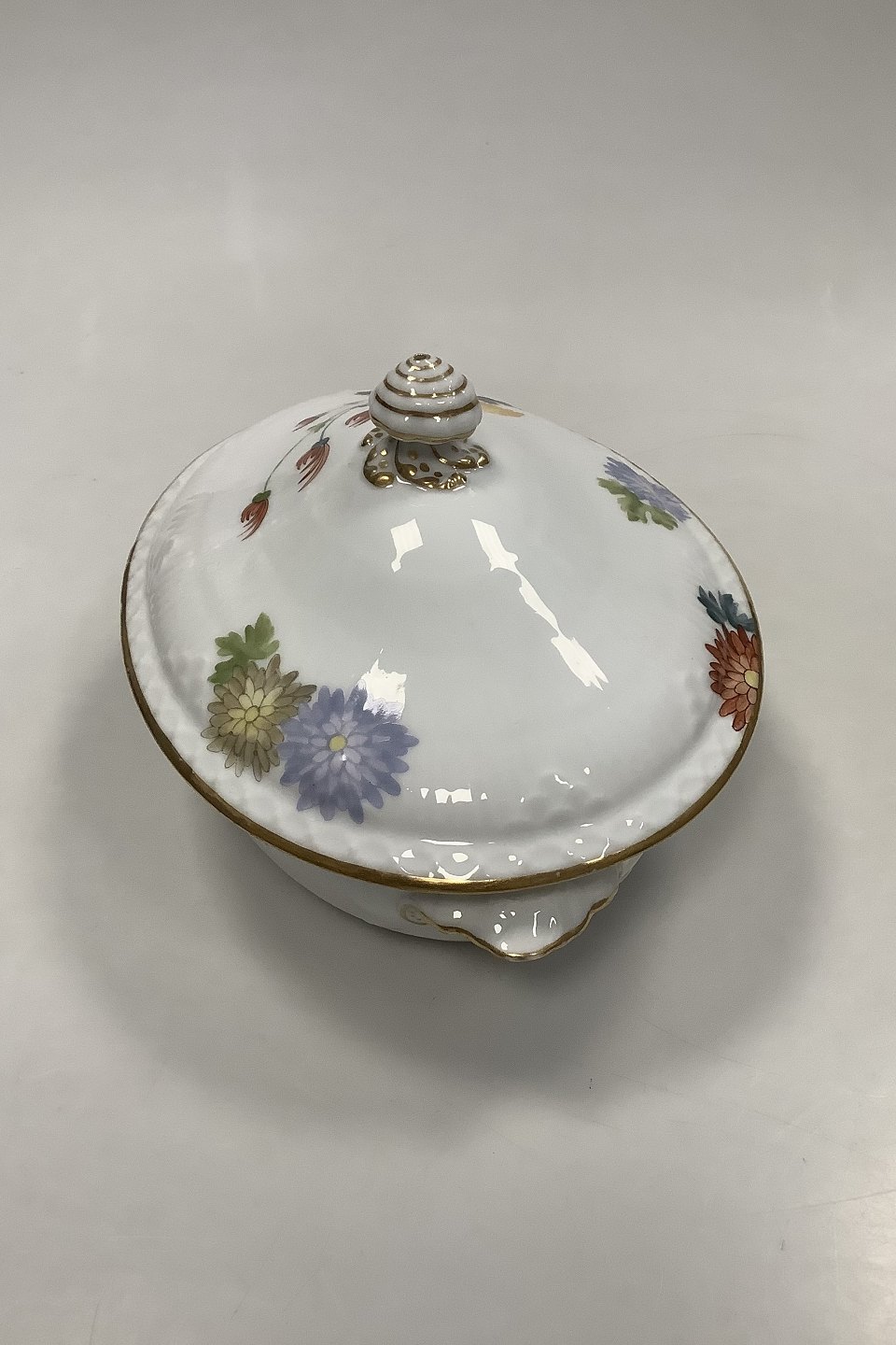 Royal Copenhagen No 93 White Half Laced w. Flowers and Gold Lidded Bowl