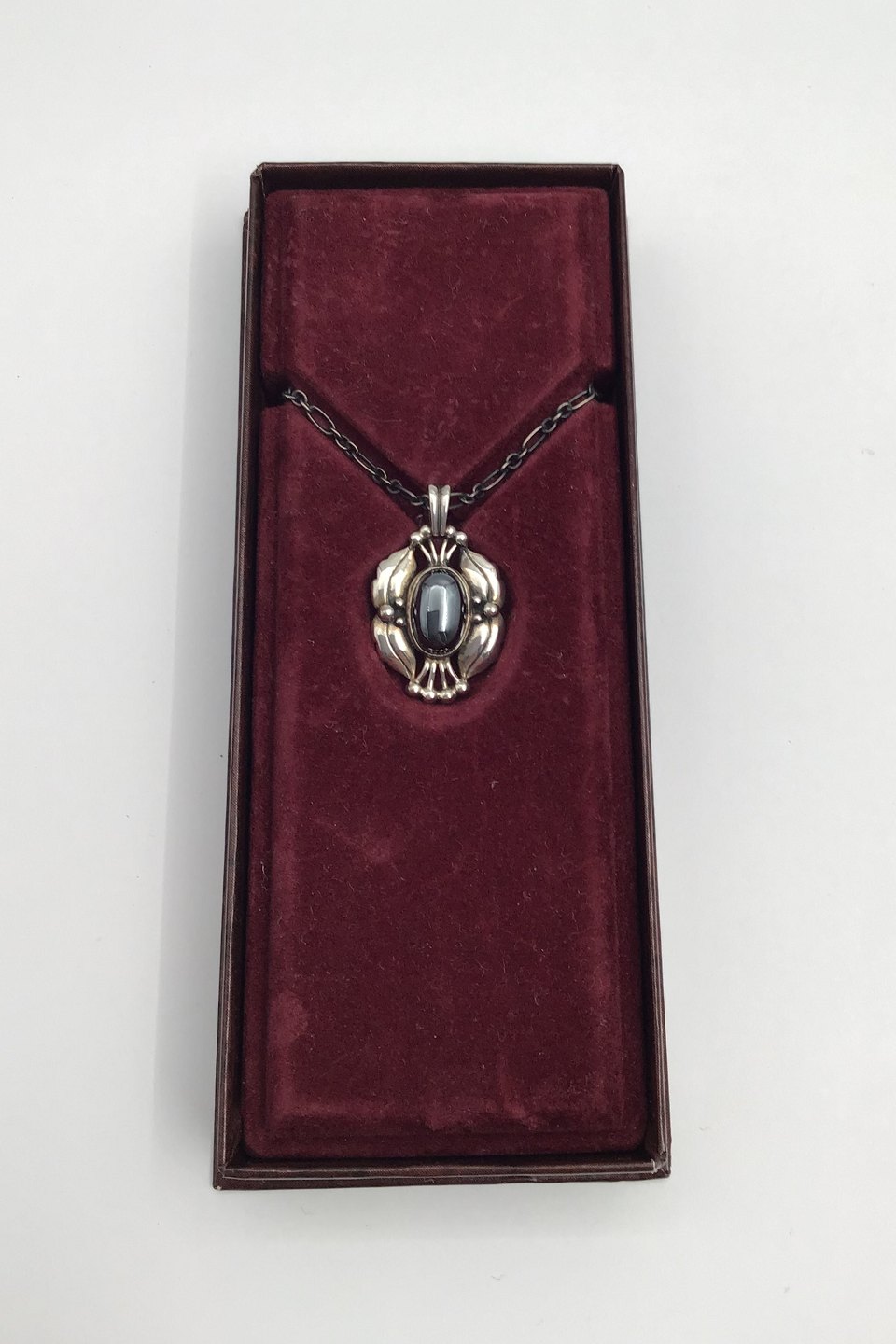 Georg Jensen Sterling Silver Annual Pendant 2000 Hematite Measures 1.9 cm x 3.1 cm (0.74 inch x 1.22 inch) Chain 44 cm (17.34 inch) Combined Weight 10.7 gr (0.38 oz) (Box)