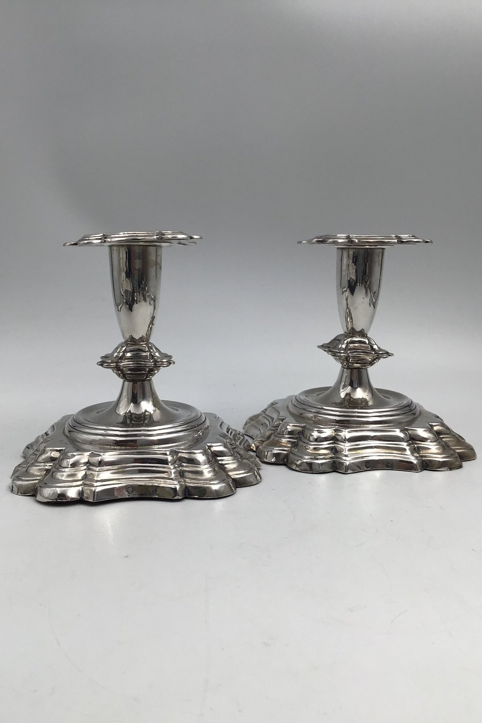 Danish Silver Candlesticks (1947-1948) (2) Measures 11 cm x 11 cm (4.33 inch x 4.33 inch) H 10.5 cm (4.13 inch) Combined Weight 542.2 gr (19.13 oz)(Weighted) (Signs of usage)