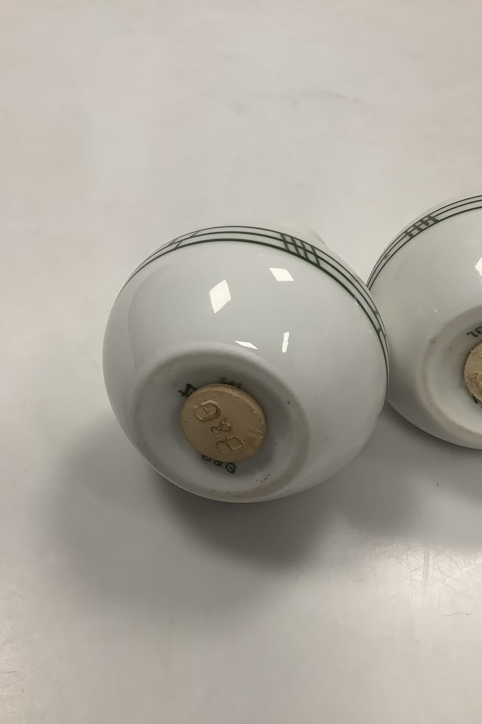 Bing & Grondahl Delfi Grøn Salt and Pepper Shakers No 531+541. Measures 8.5 cm / 3 11/32 inch