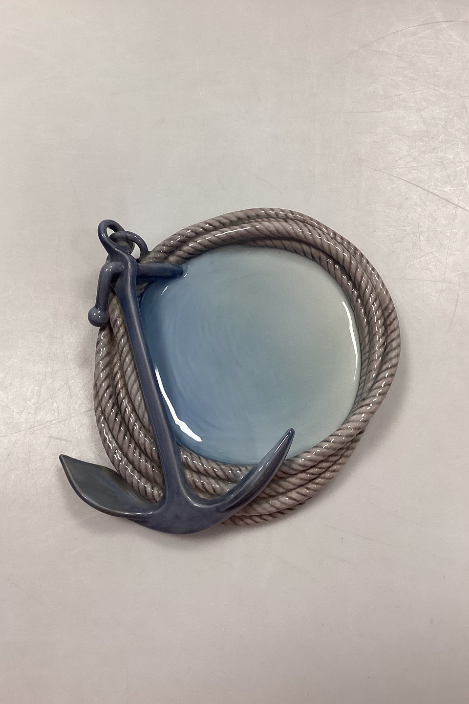 Bing and Grøndahl Bowl with Rope and Anchor No. 2377. Measures 22 cm x 20 cm / 8.66 in. x 7.87 in.