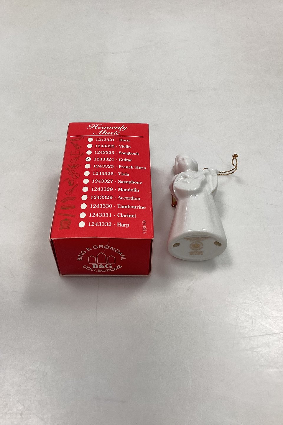 Bing og Grøndahl Figur Heavenly Music Engel - Guitar No. 4. Juleornament i blanc de chine porcelæn med guld og snor til ophæng. Måler 9,5 cm / 3,74 in.