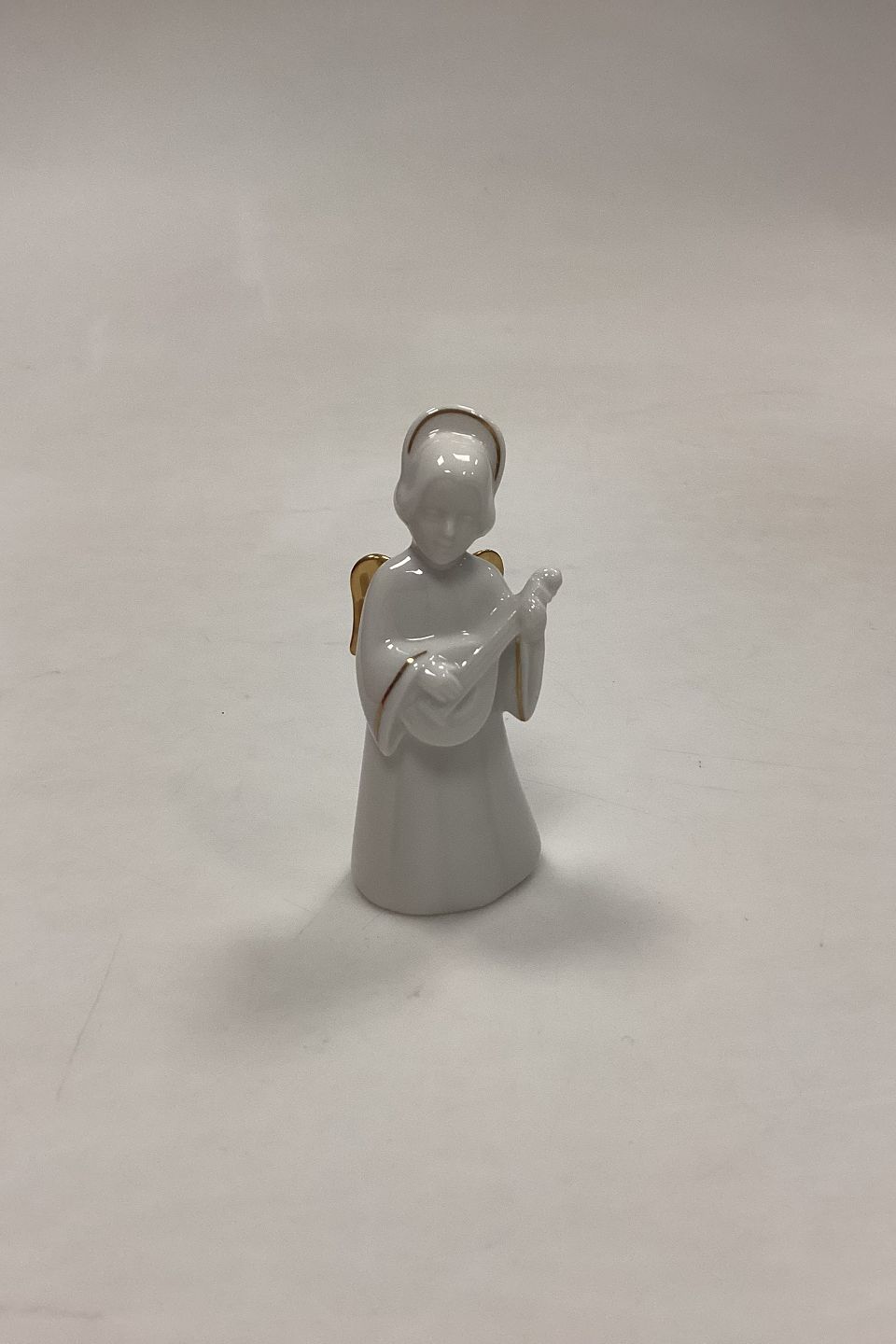 Bing og Grøndahl Figur Heavenly Music Engel - Mandolin No. 8. Juleornament i blanc de chine porcelæn med guld og snor til ophæng. Måler 9,5 cm / 3,74 in.