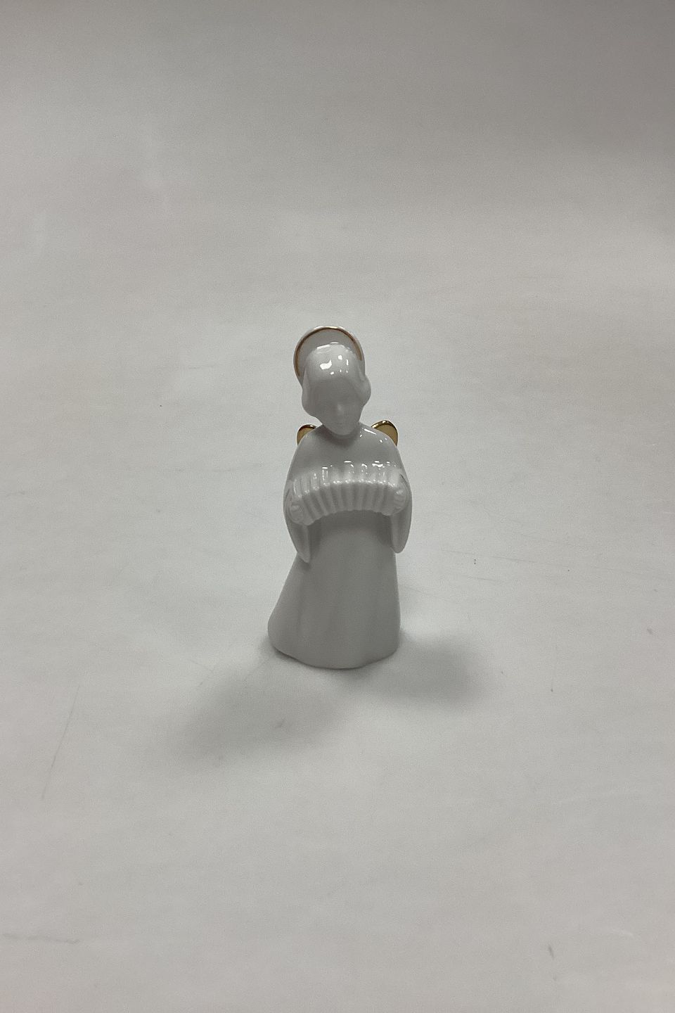 Bing og Grøndahl Figur Heavenly Music Engel - Harmonika No. 9. Juleornament i blanc de chine porcelæn med guld og snor til ophæng. Måler 9,5 cm / 3,74 in.