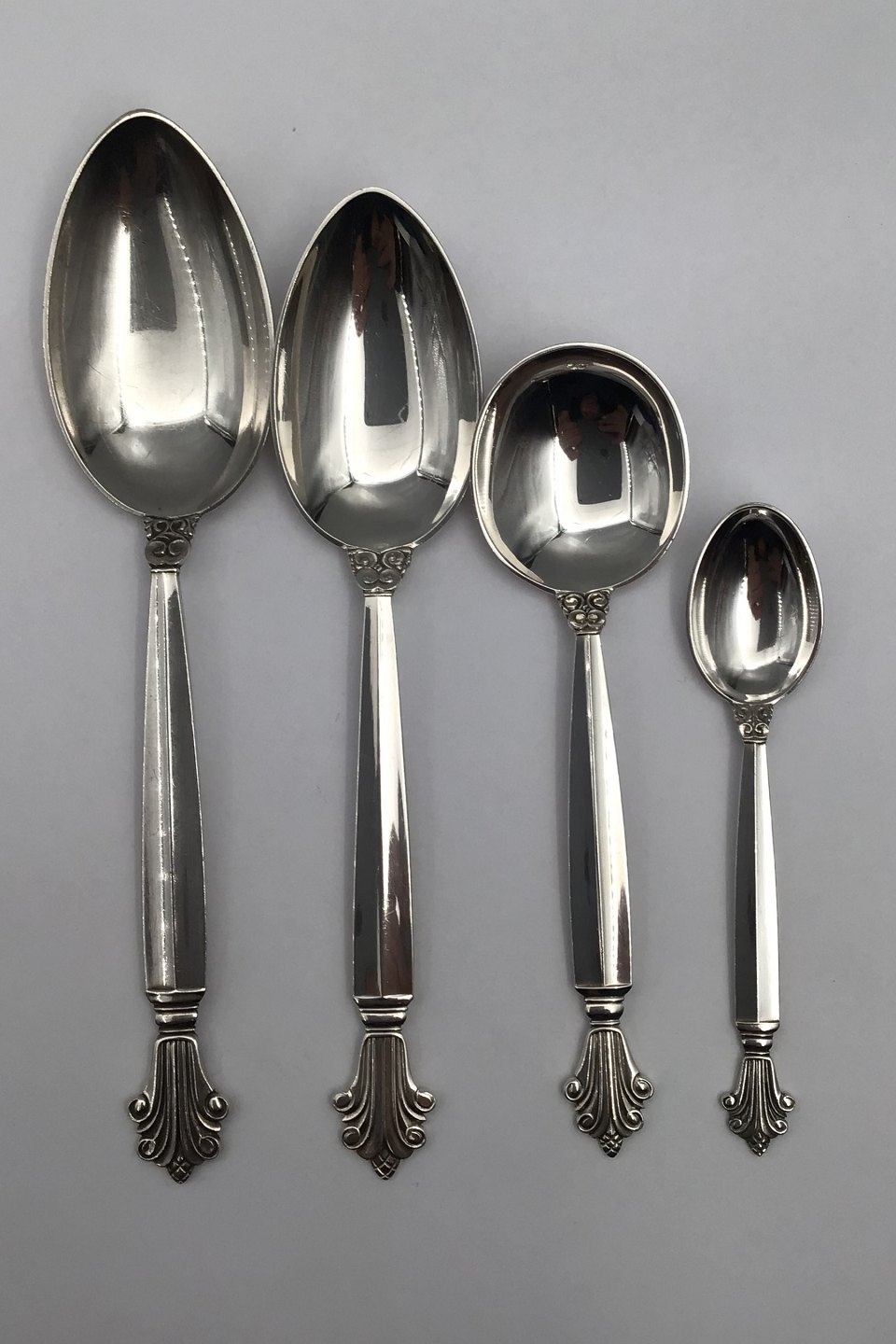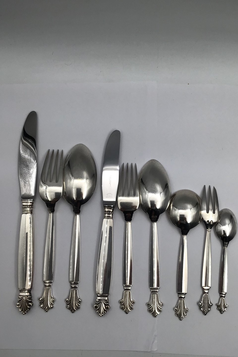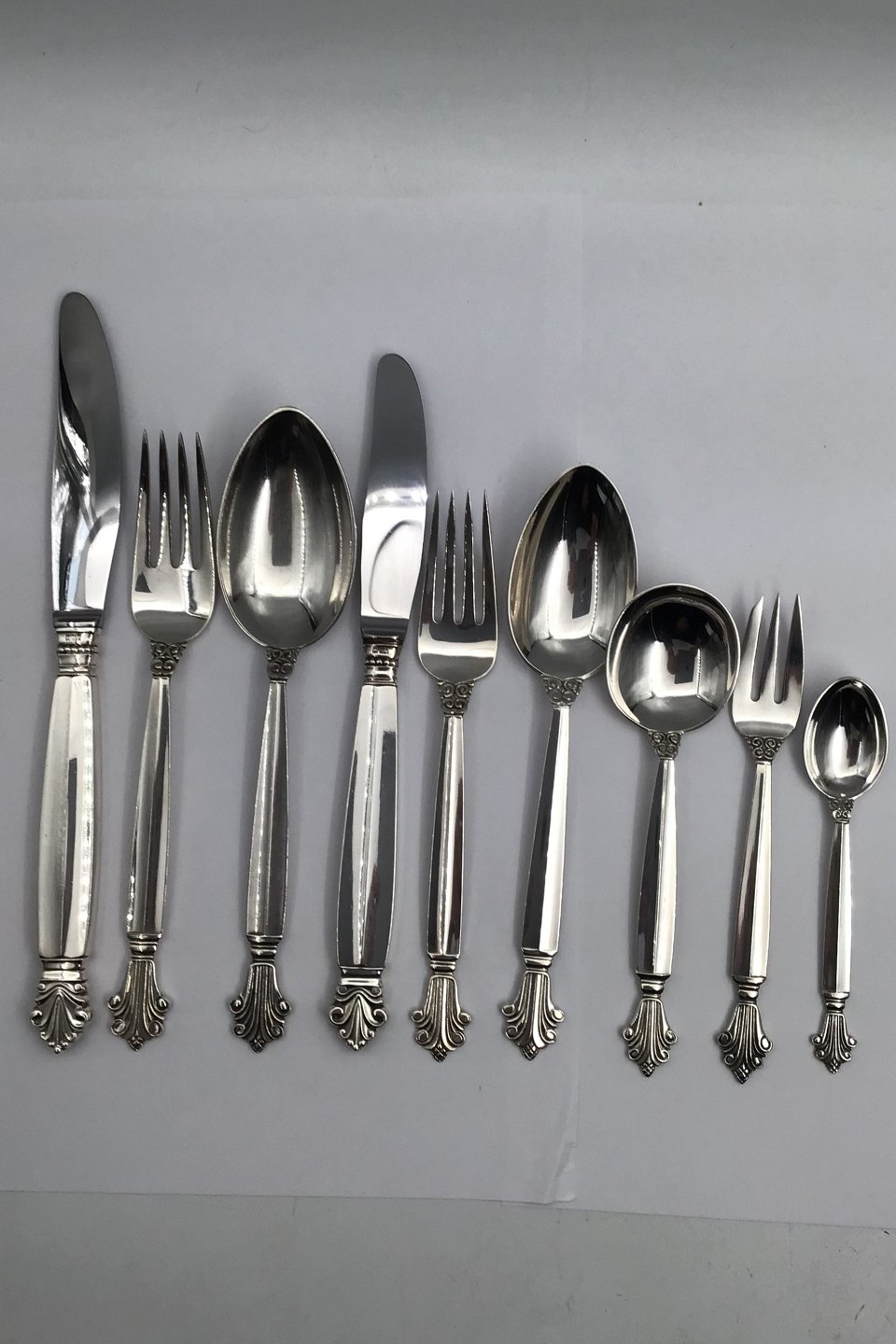Georg Jensen Sterling Sølv Dronning Bestik sæt, 12 Personer (108 dele)