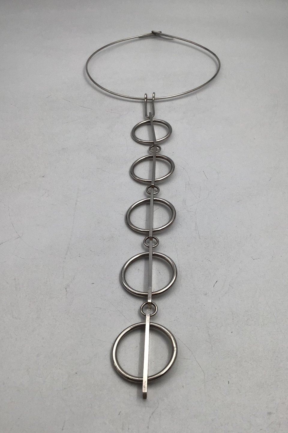 Hans Hansen Sterling Silver Necklace Measures Neckring Diam 12 cm (4.72 inch) Pendant 26 cm (10.23 inch) Weight 70.64 gr (2.49 oz)