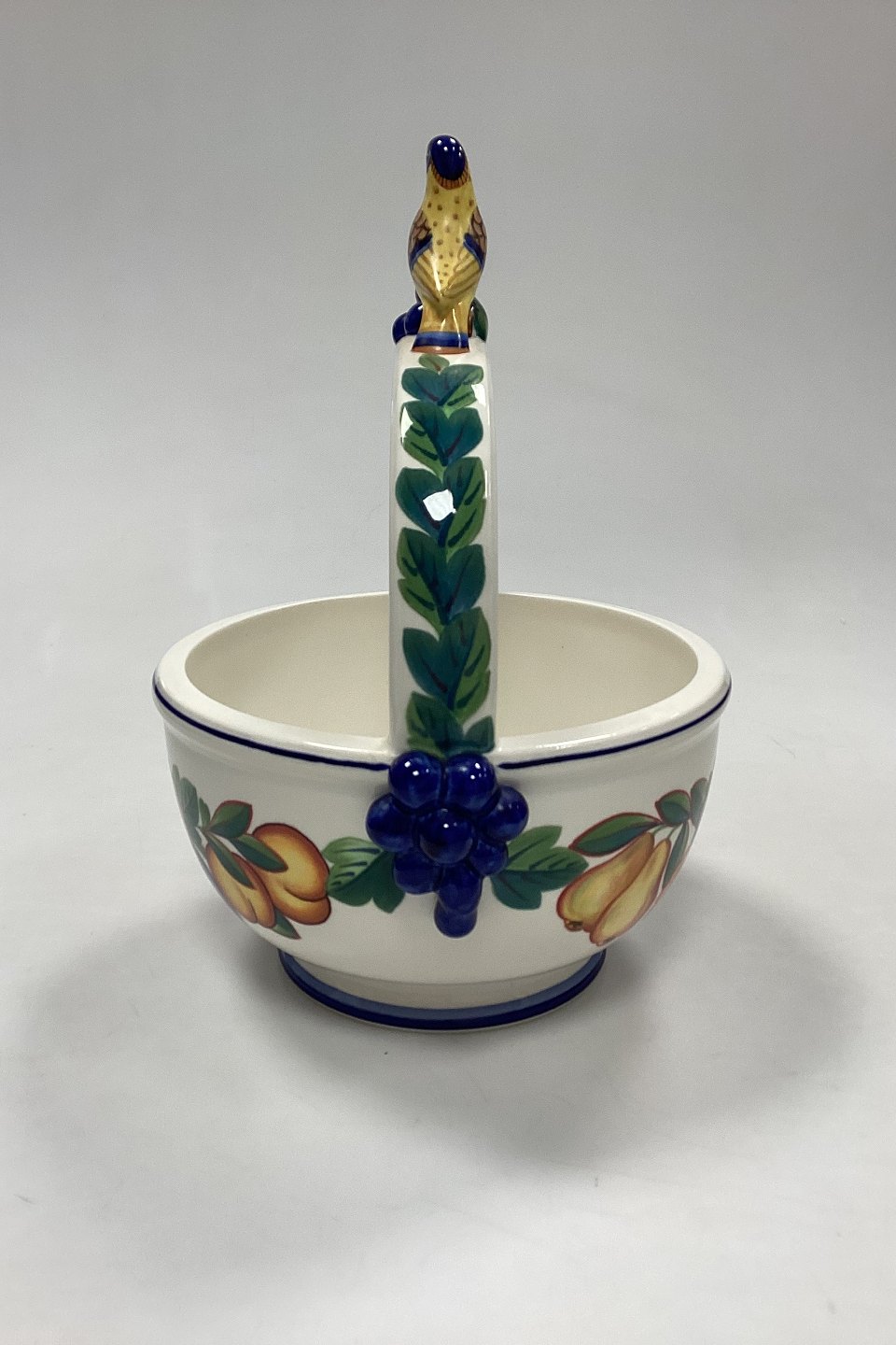 Royal Copenhagen Golden Summer Bowl with Handle. Ideal for flowers, fruit or plants. 3rd Quality. Small glaze flaw, see photo.