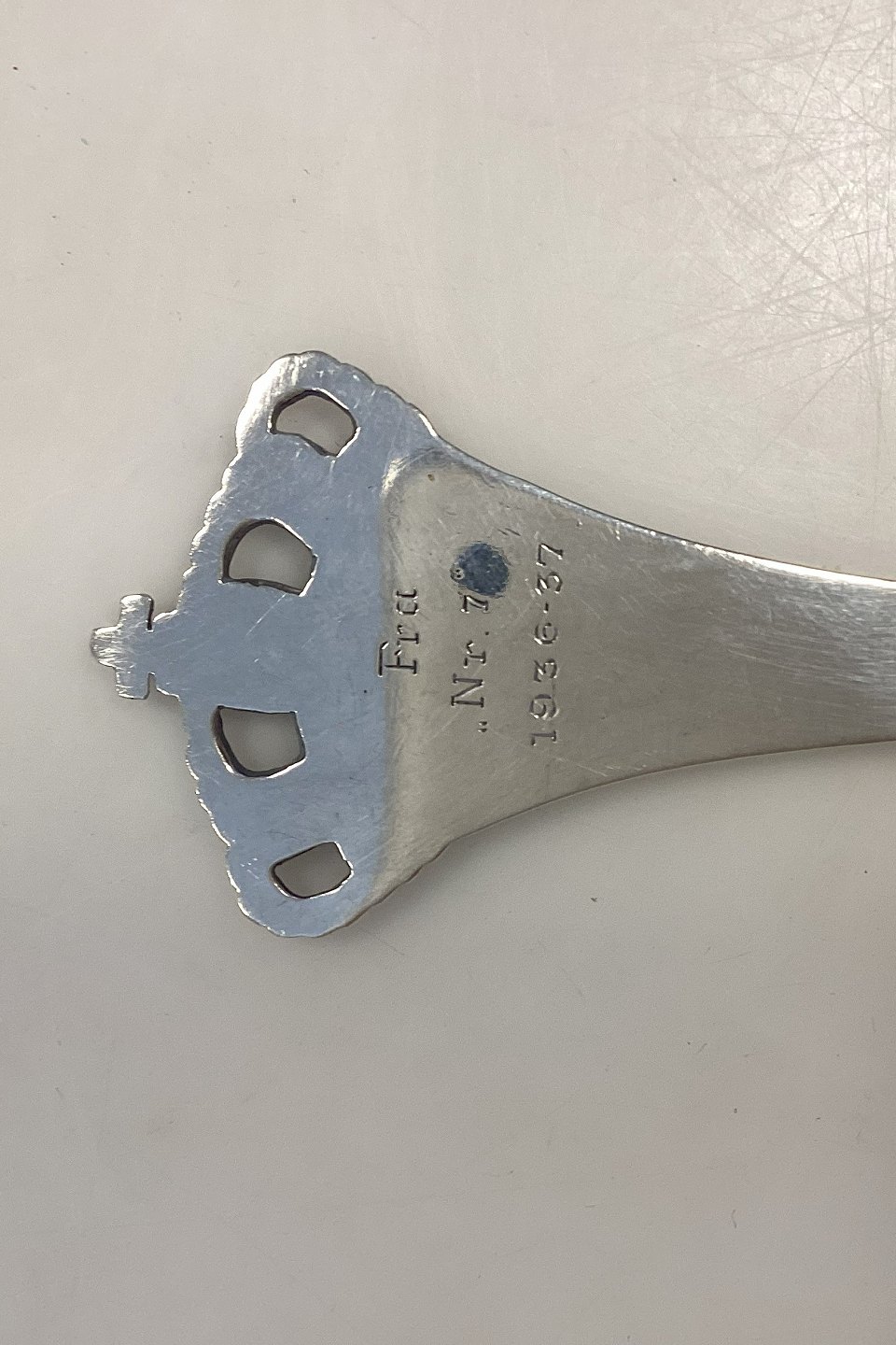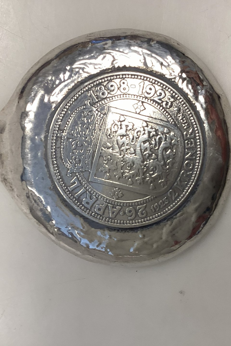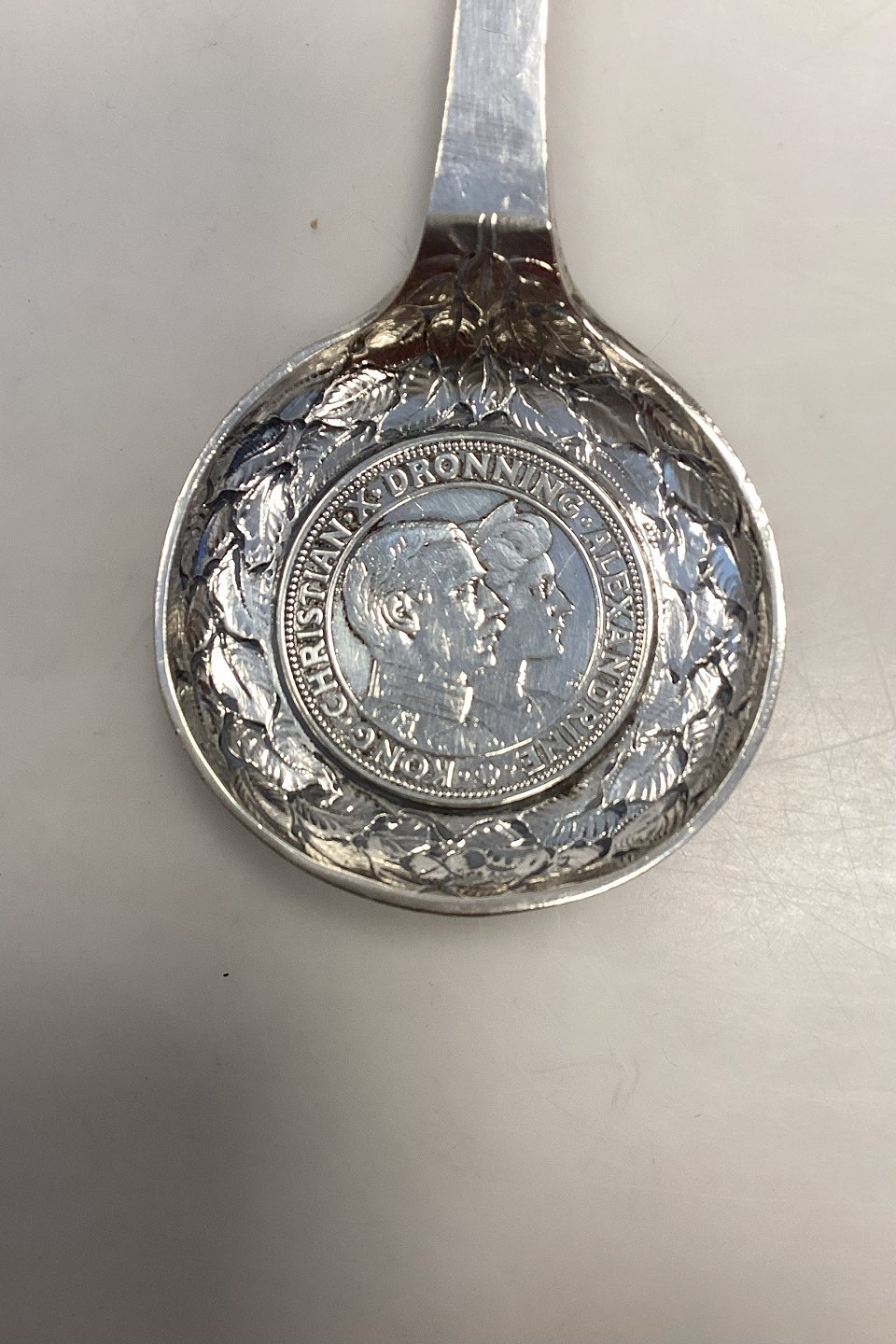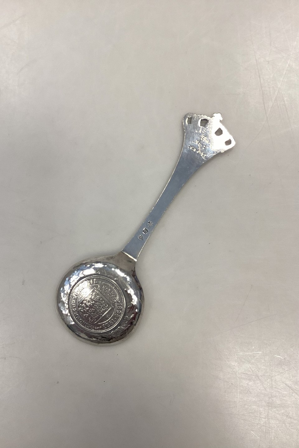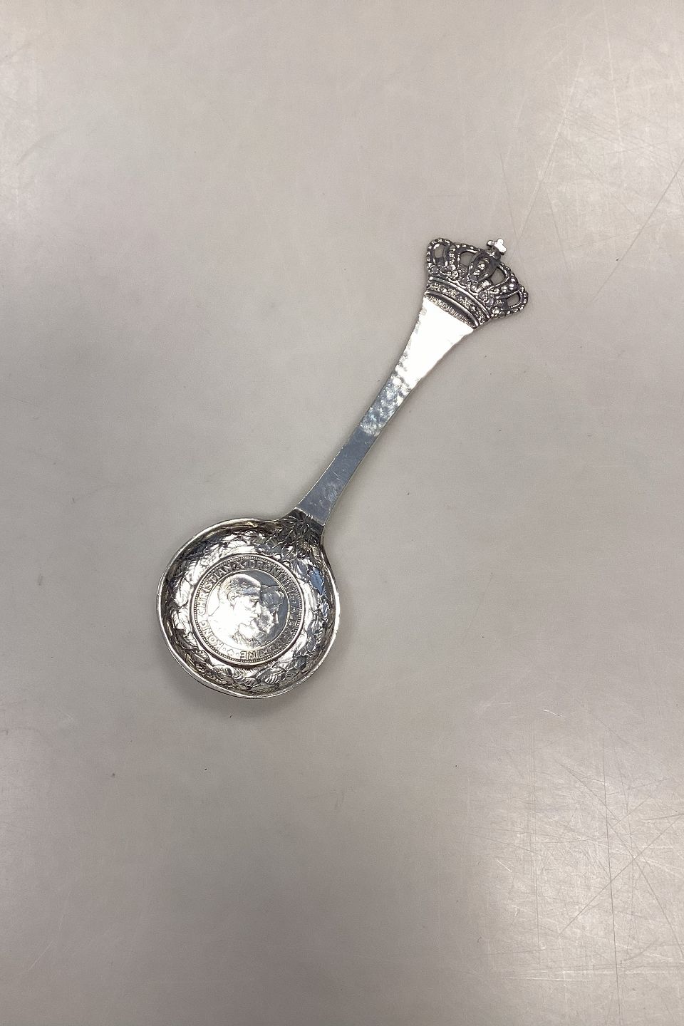 Dansk Ornamental Sølvske med Mindemønt og krone dekoration