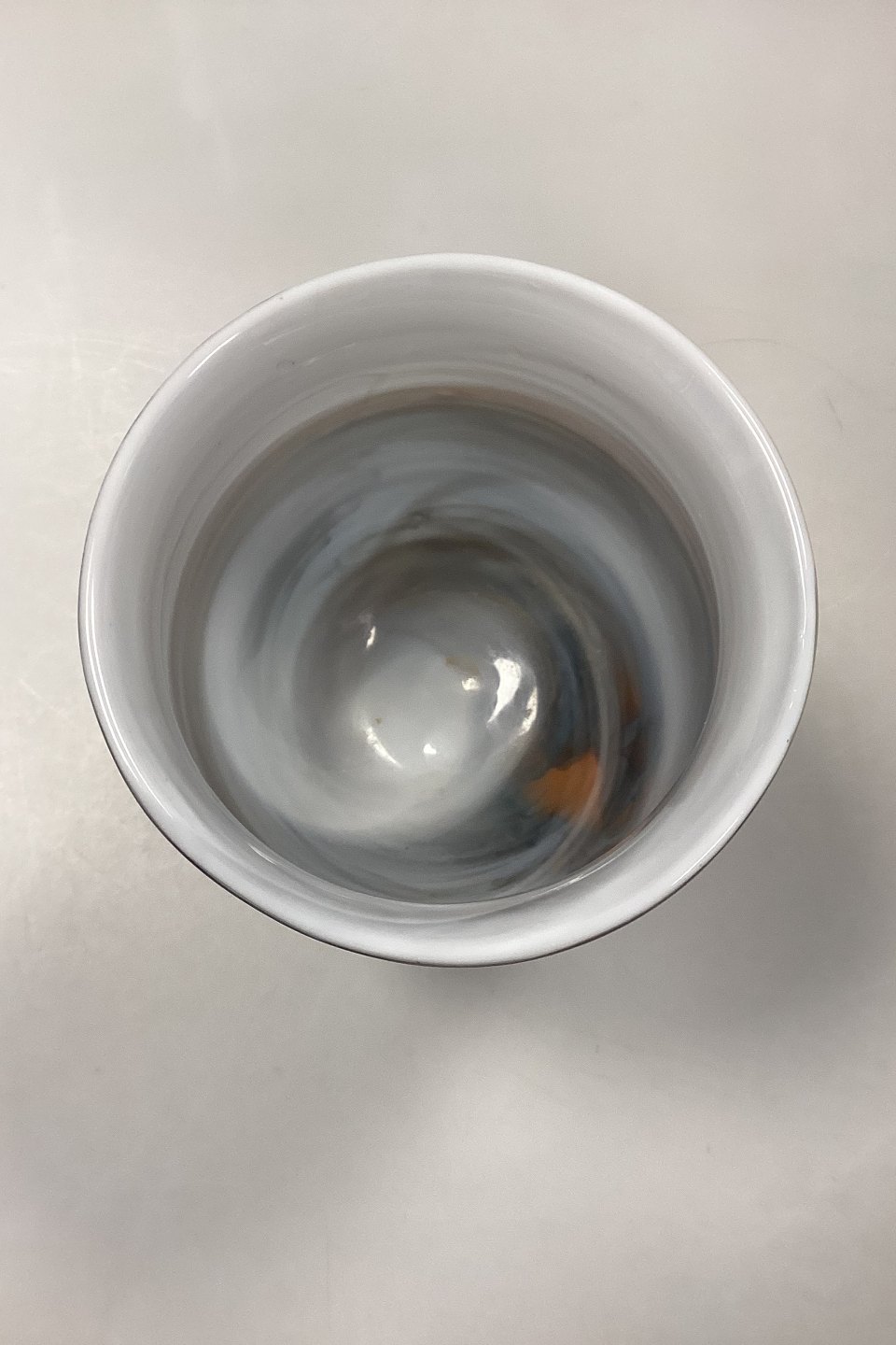 Holmegaard Cascade Glasskål / Pokal / Vase. Designet af Per Lütken. Selve skålen er opalhvid indvendig, med multifarvede brune, blå, og orange toner udvendig. Signeret HG4 PL. Lettere brugsspor i bunden.
