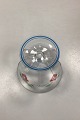 Orrefors Maja Glass bowl with red flowers and blue striped rim on foot. Designed by Eva Englund. Signed EE.AL. Made in Sweden.