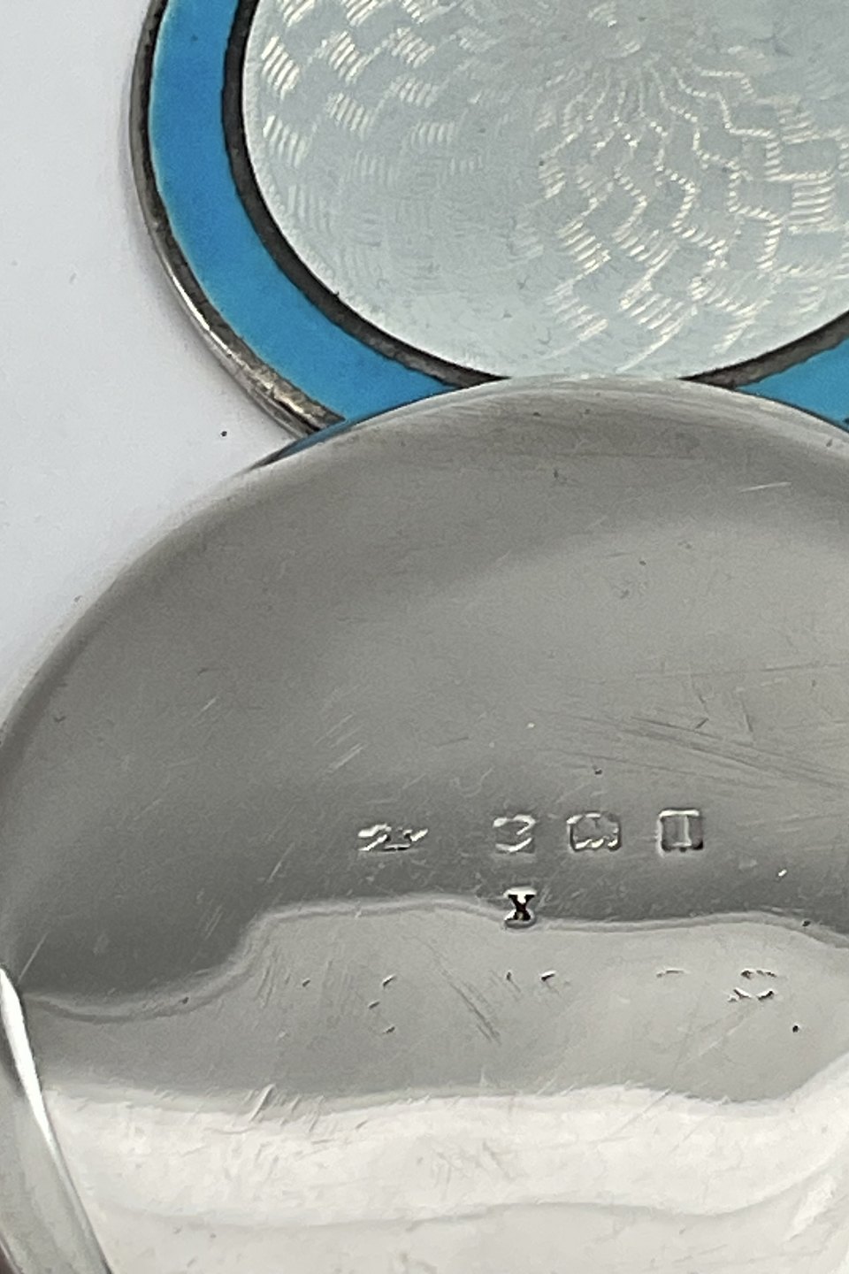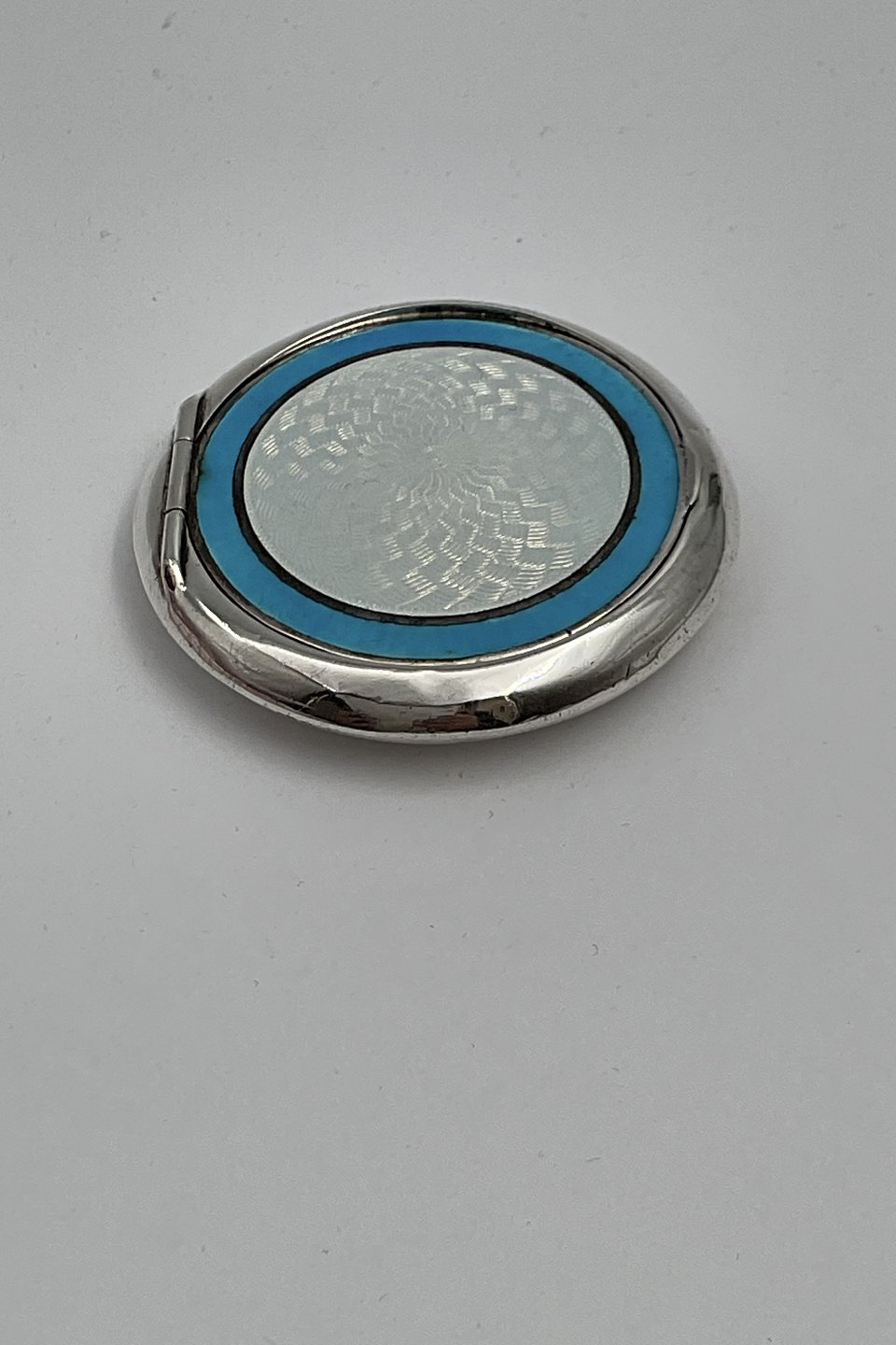 Engelsk Sterling Sølv Pilleæske med Lyseblå Emalje