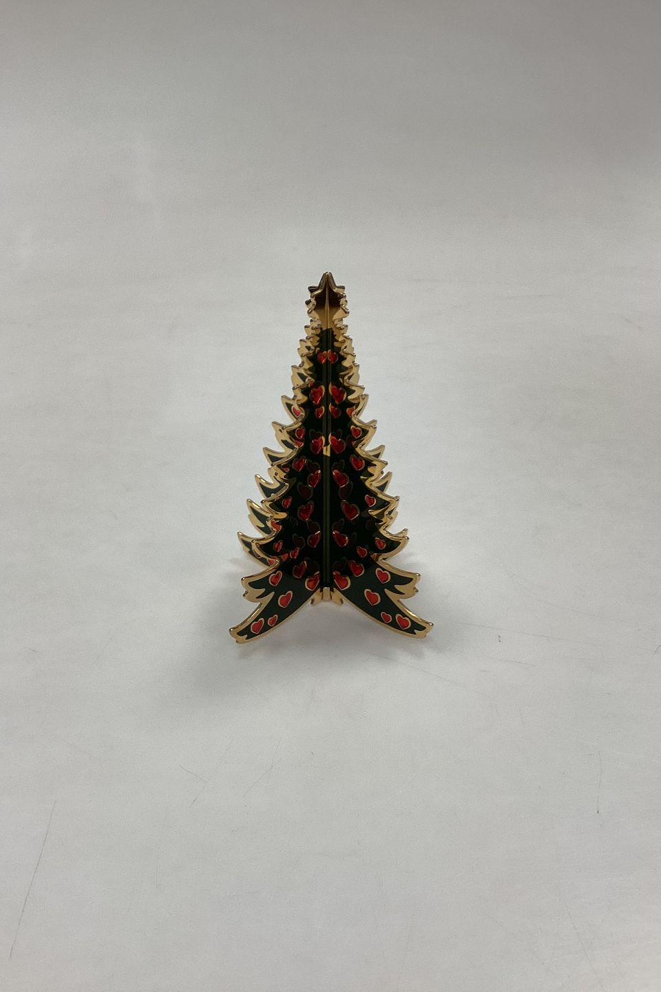 Royal Copenhagen Christmas Lille Juletræ. Bordpynt i messing med grøn emalje og røde hjerter.