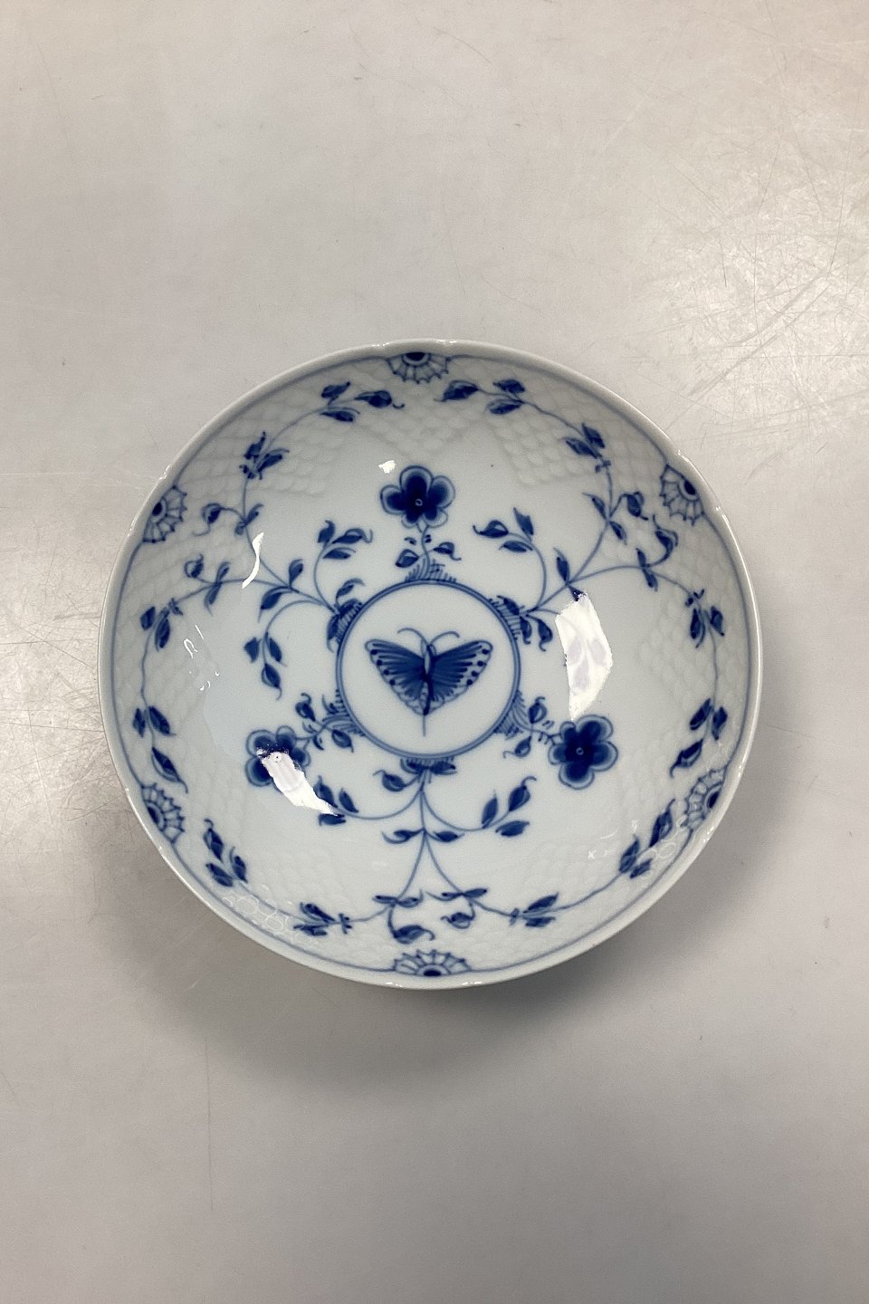 Bing and Grondahl Butterfly Footed Cake Bowl, small No. 427 or 222. Measures 5.5 cm x 15.5 cm / 2.16 in. x 6.10 in.