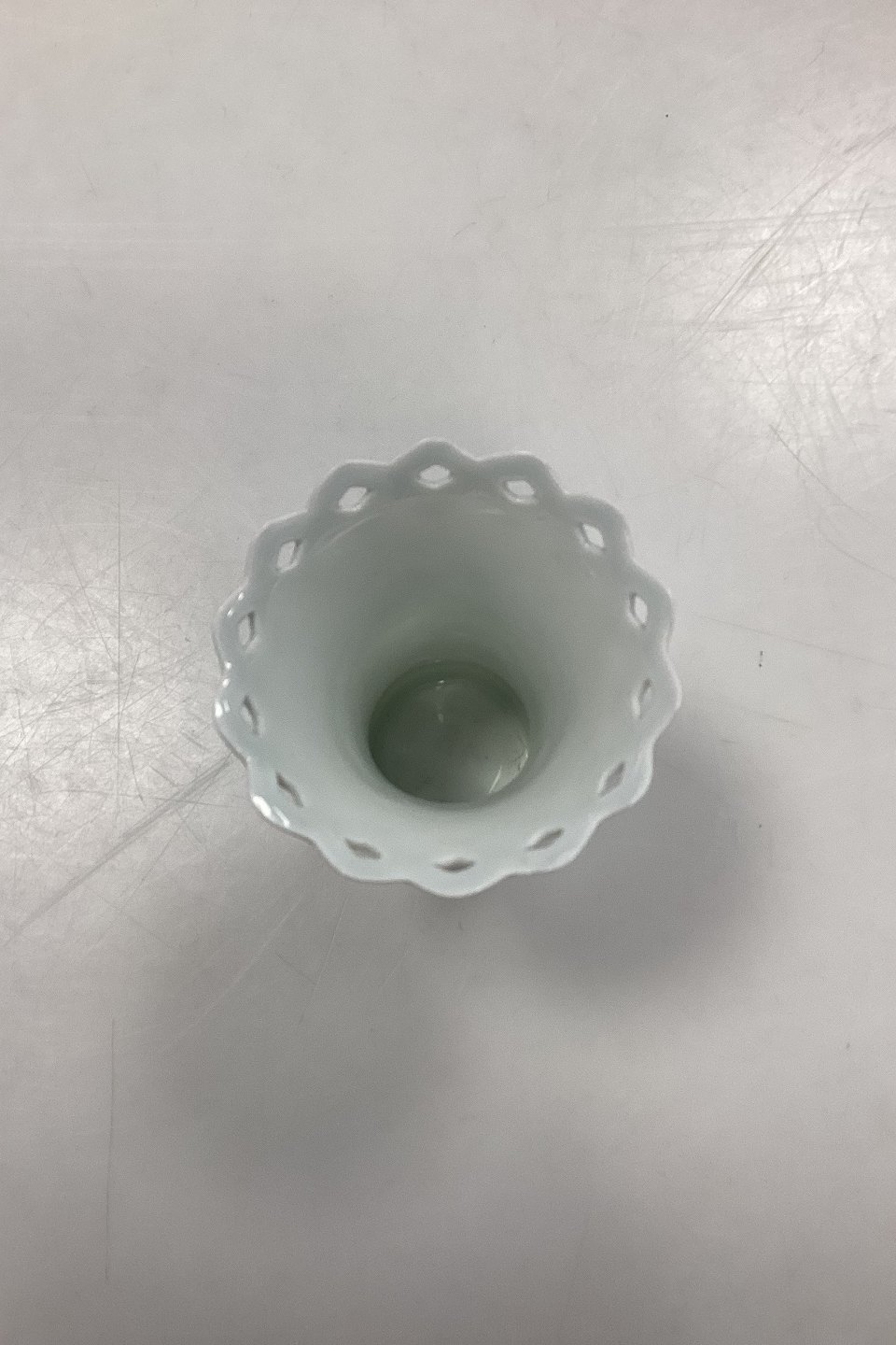 Bing and Grondahl Butterfly Pierced Vase No. 673 or 171. Measures 8 cm / 3.14 in.