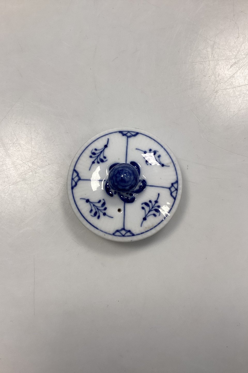 Royal Copenhagen Musselmalet Riflet Låg til Tekande No. 259. Indre diameter måler 5,8 cm / 2,28 in. 1. Sortering