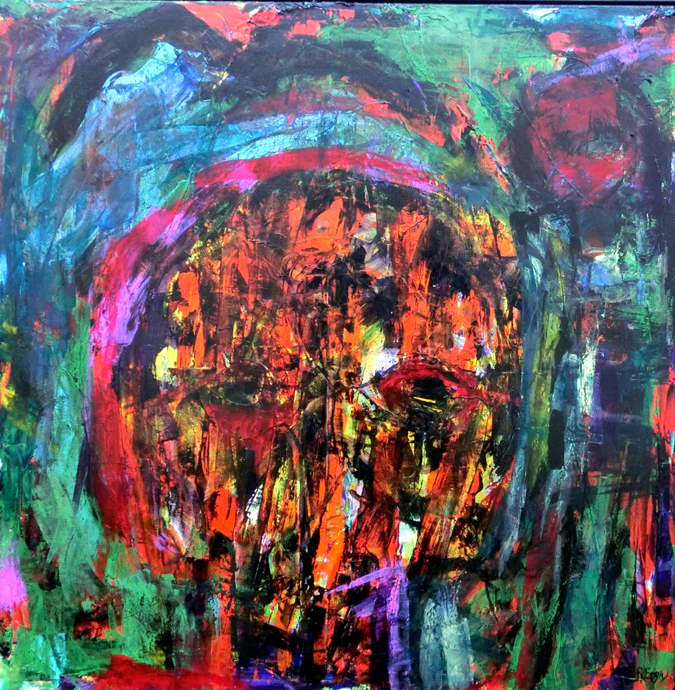 "Stilstand" akryl på lærred, i sølv svæve ramme.