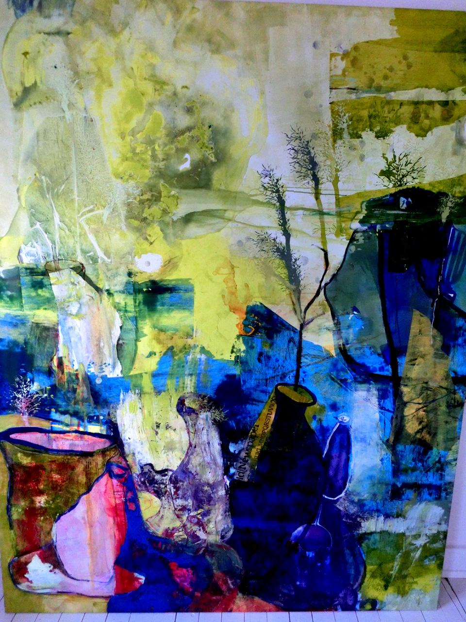 Verdensklasse. Olie, akryl og collage på lærred. Maleriet skal ses.