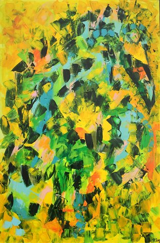 "Modtagelig for forførende fjer" Akryl maleri i sølv svæve ramme.