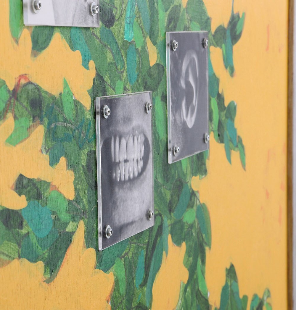 "Selvportræt" Olie maleri og plexiglas på plade.