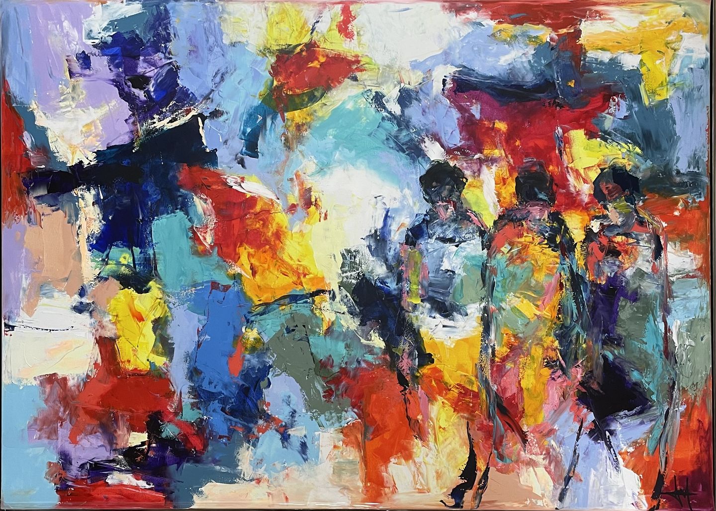 Stor flot komposition, monteret i sølv svæveramme fra Bogø design.