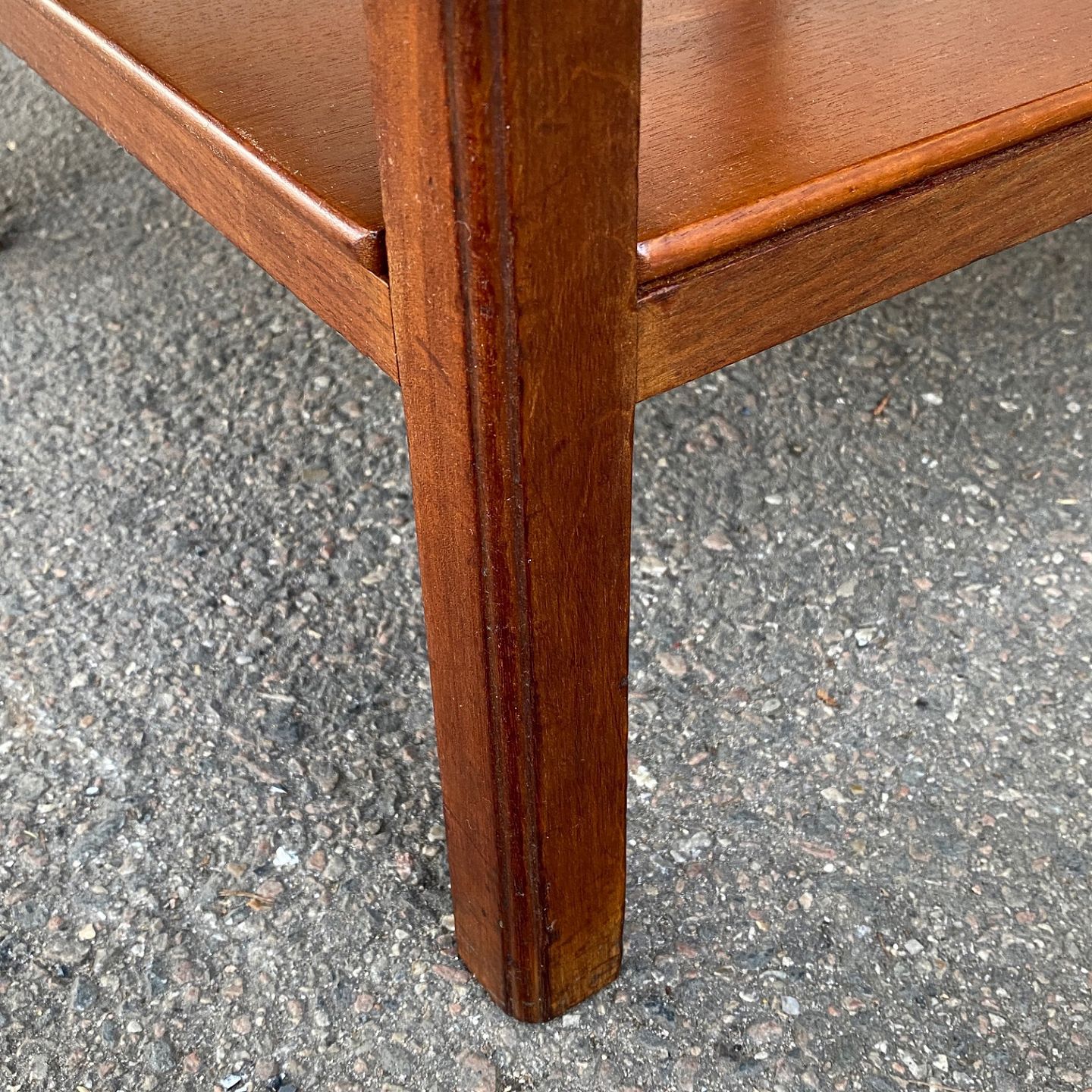 Kaare Klint sofabord, udført i massiv Cuba-mahogni hos Rud. Rasmussen. Bordet er en tidlig model der er yderst sjælden. Der er detaljer i underkanten af bordet og måden hylden er understøttet der er helt forskellig fra normalt.