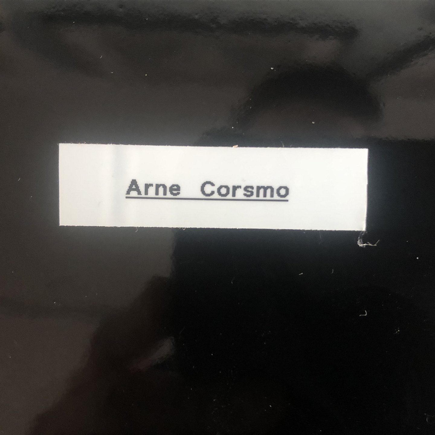 Arne Korsmo rundt fad med gul & sort emajle. Ø 26 cm. Pris 1200 kr. Fin stand