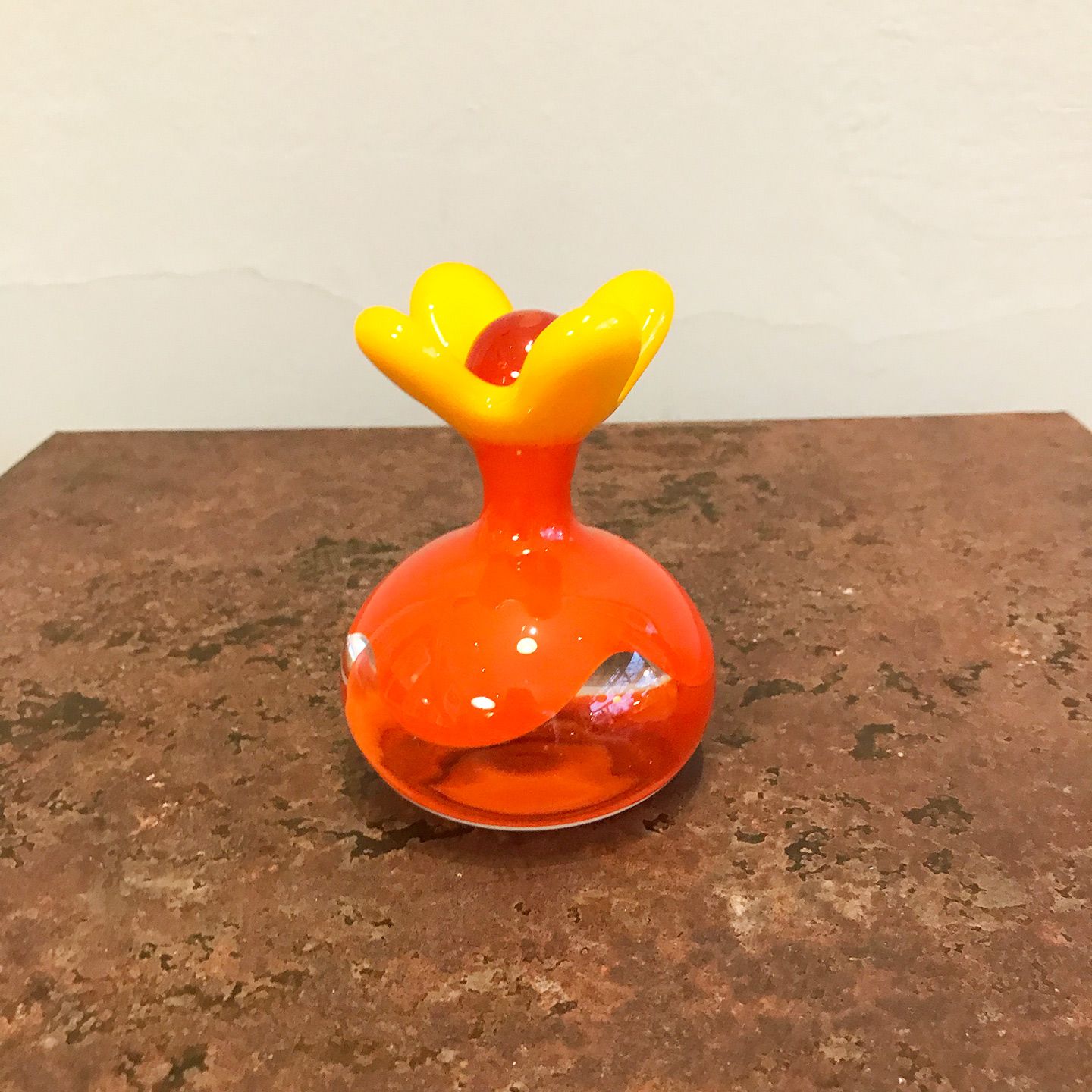 Itemnumber: 492393Glass sculpture in the shape of a flower, made in yellow, orange and clear glass. About 1970. Unknown origin. Height 10cm dia. 8cm. Fine condition.
