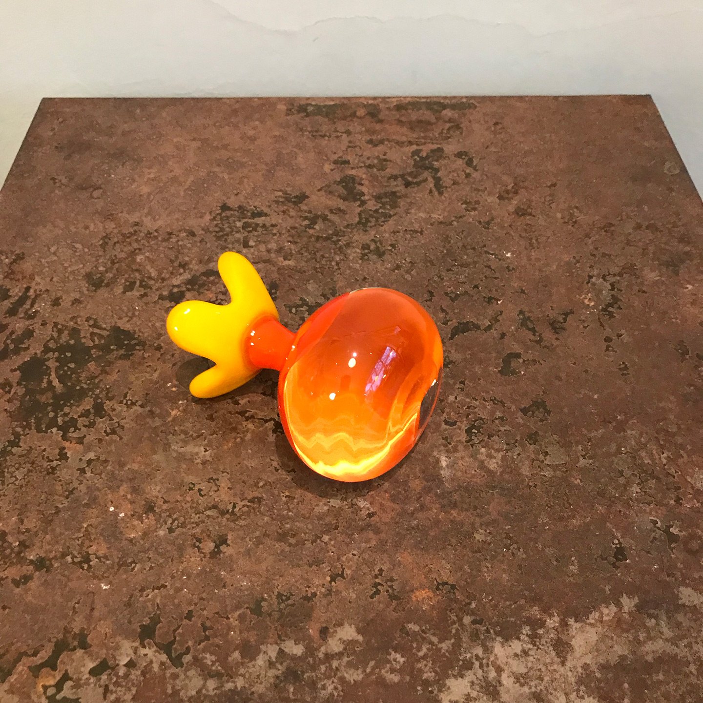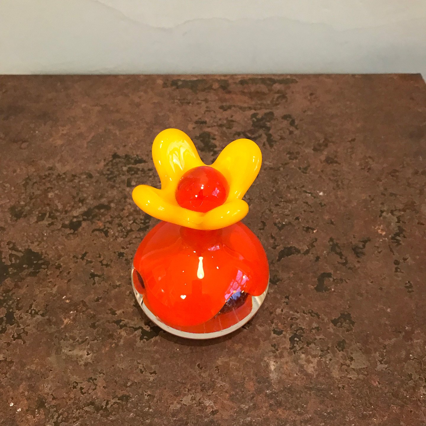 Glass sculpture in the shape of a flower, made in yellow, orange and clear glass. About 1970. Unknown origin. Height 10cm dia. 8cm. Fine condition.