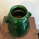 Varenummer: 492394Stor lertøjs vase fra S:t Eriks i Upsala med grøn glasur, 4 hanke og relief motiv af 3 ugler på den ene side og en hane på den anden.