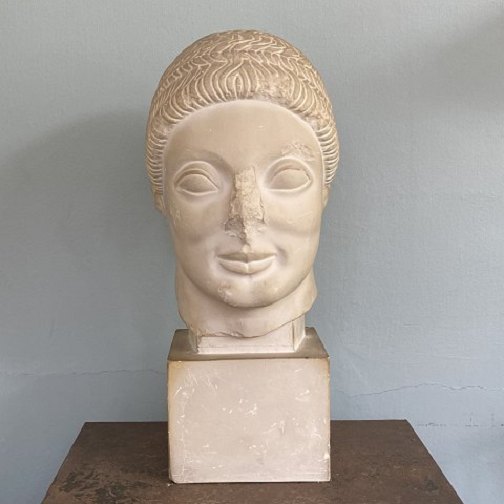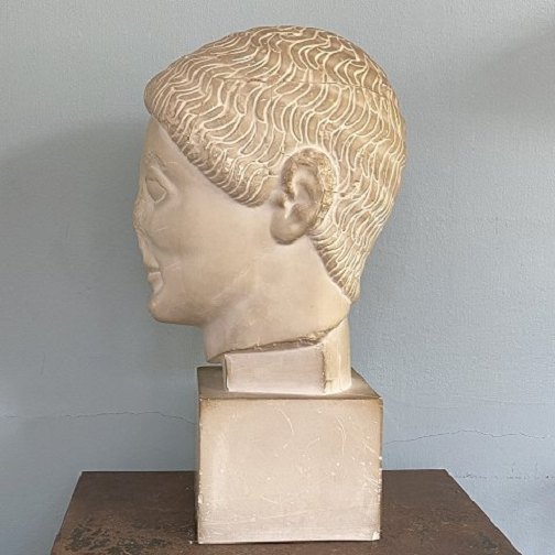 Gipsbuste. Afstøbning fra Glyptoteket af "Rayet hovedet" (ung mand),Grækenland d.6. århundrede.