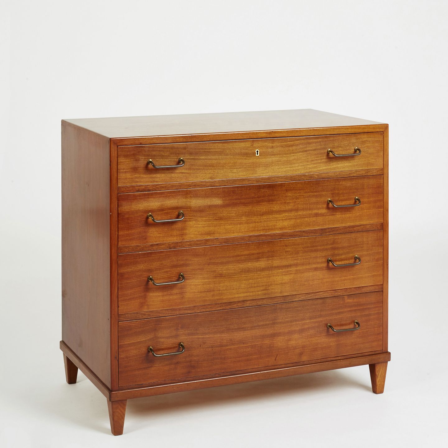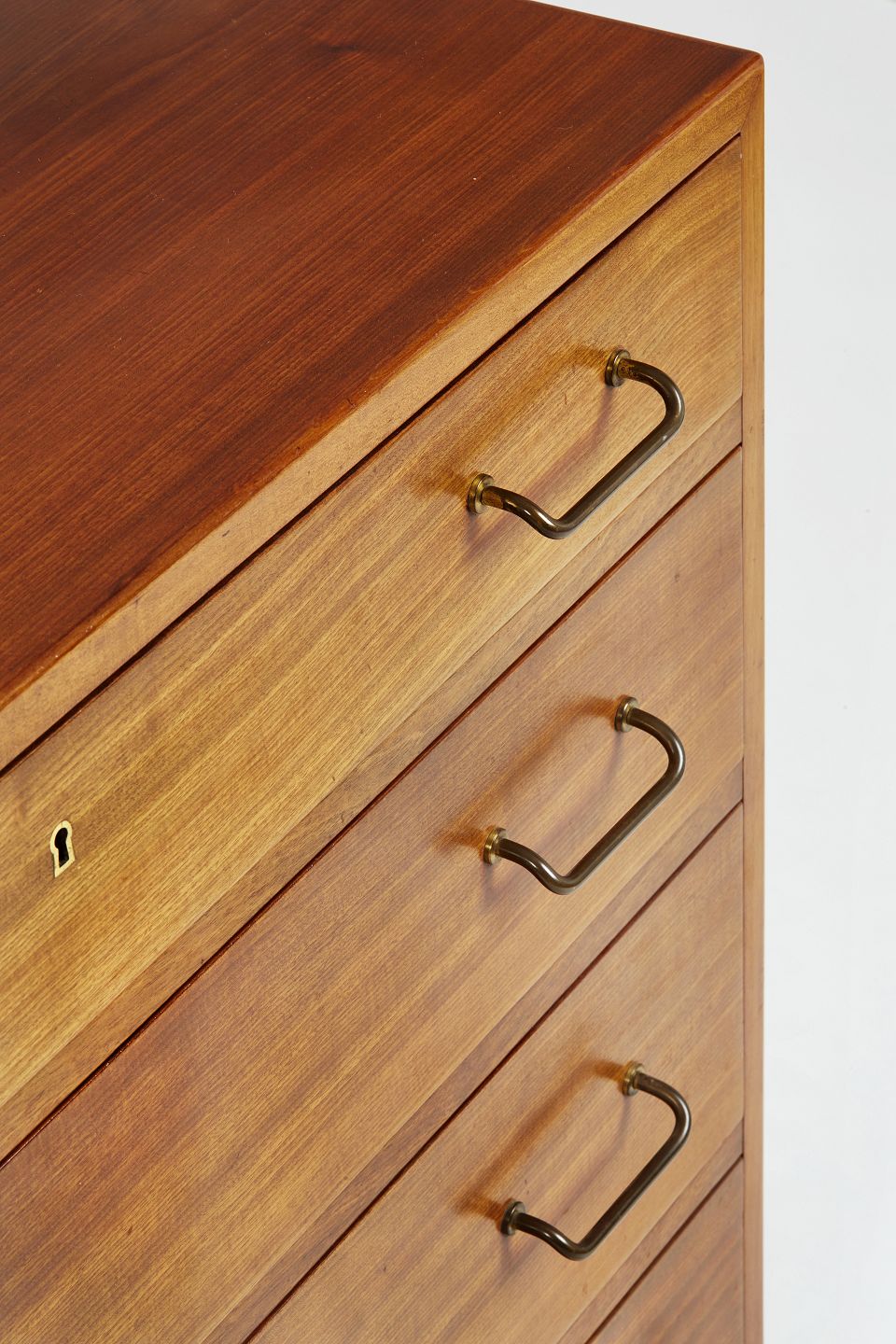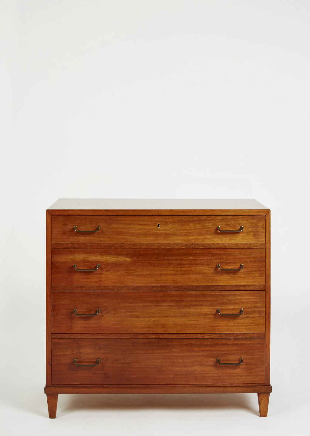 Danish Cabinetmaker mahogany chest of drawers with four drawers made inside in solid oak. Front with handles on the brass drawers.