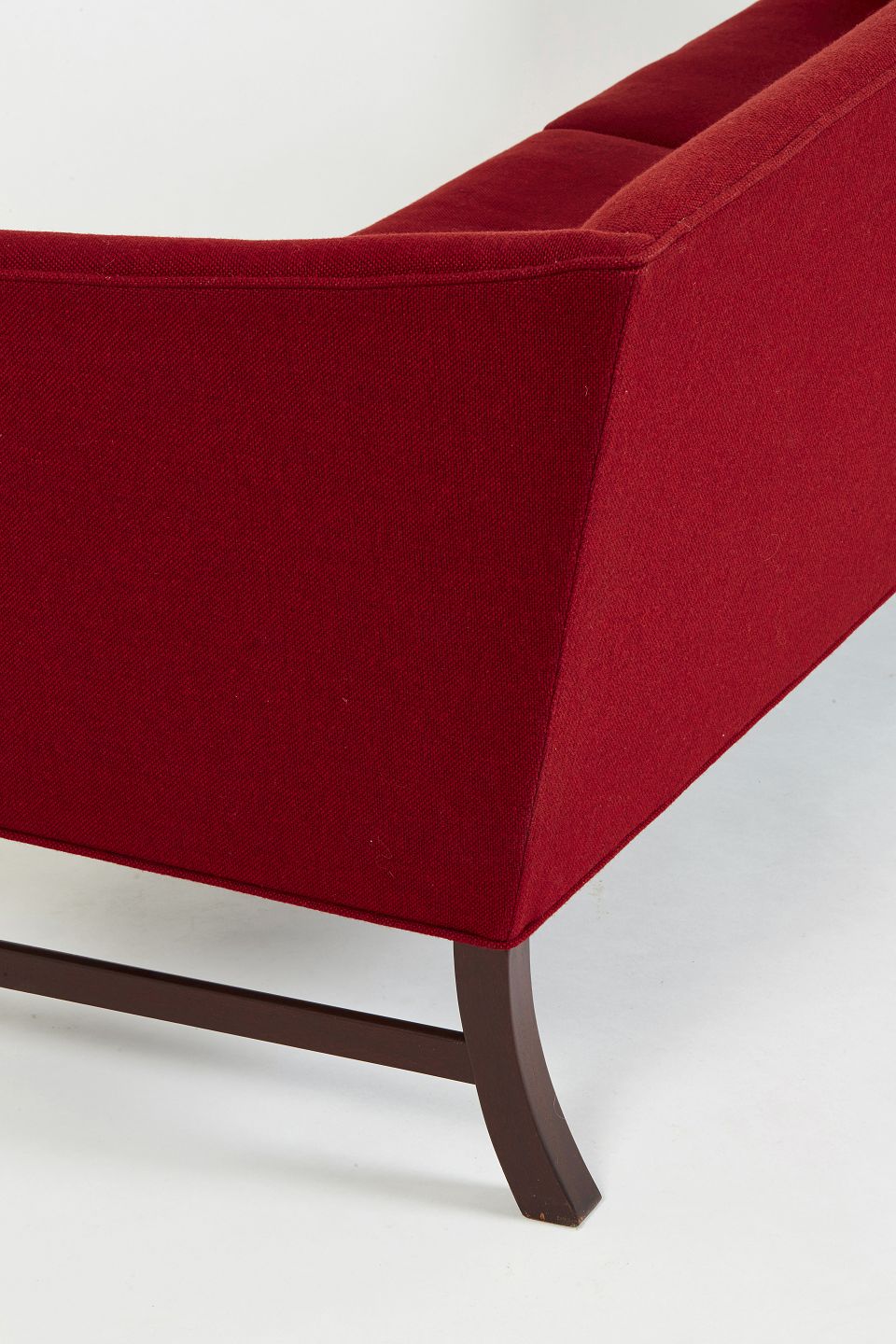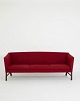 Ole Wanscher 3-personers sofa udført hos P.E.Jeppesen i rød uld og mahogni ben.Løse hynder med dunfyld. Fin brugt stand.