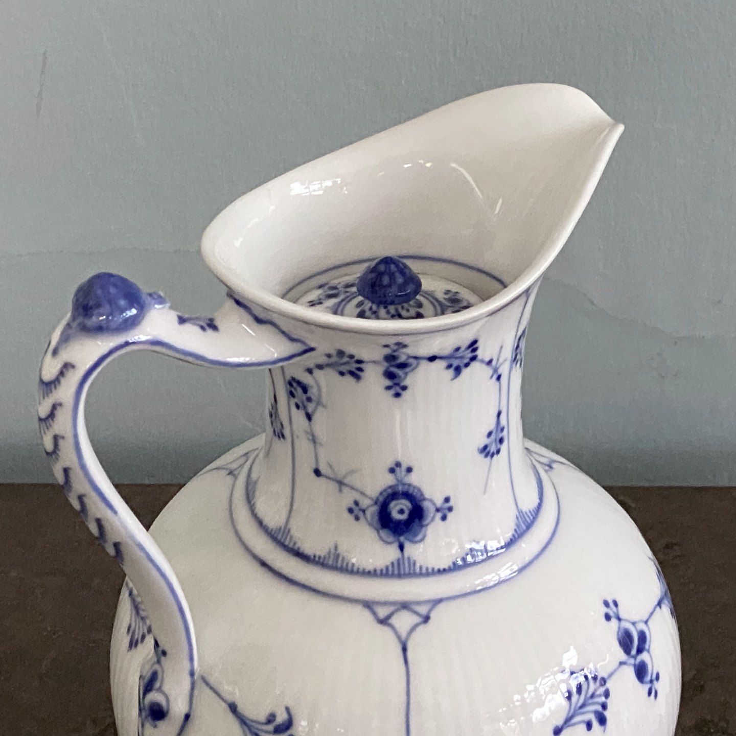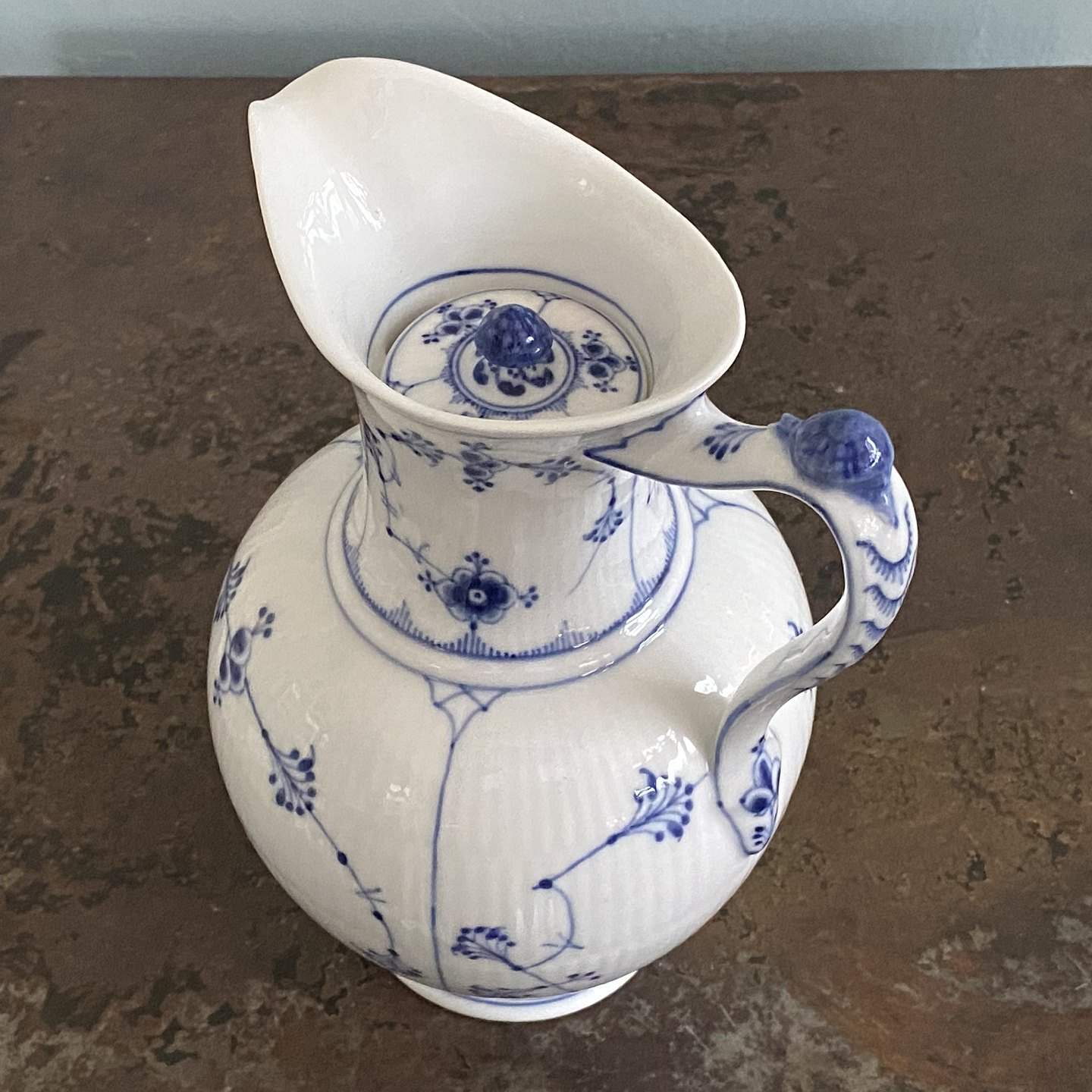 Royal Copenhagen. Blue fluted chocopot no. 482 with lid, manufactured in 1894-1900. 1. Sorting .H. 23 cm.