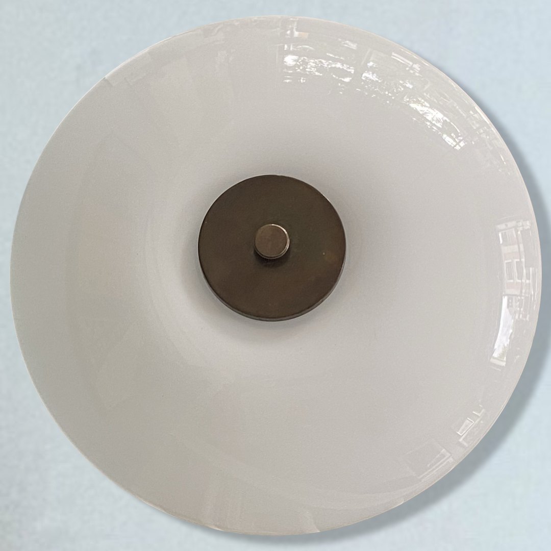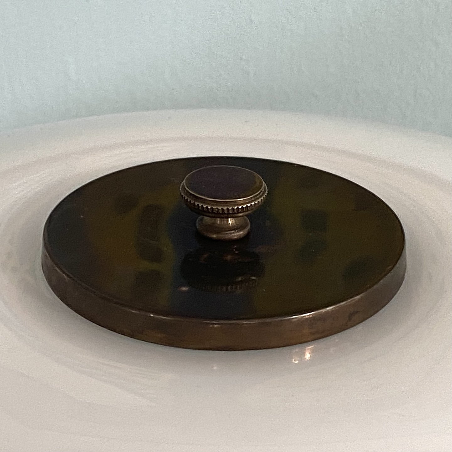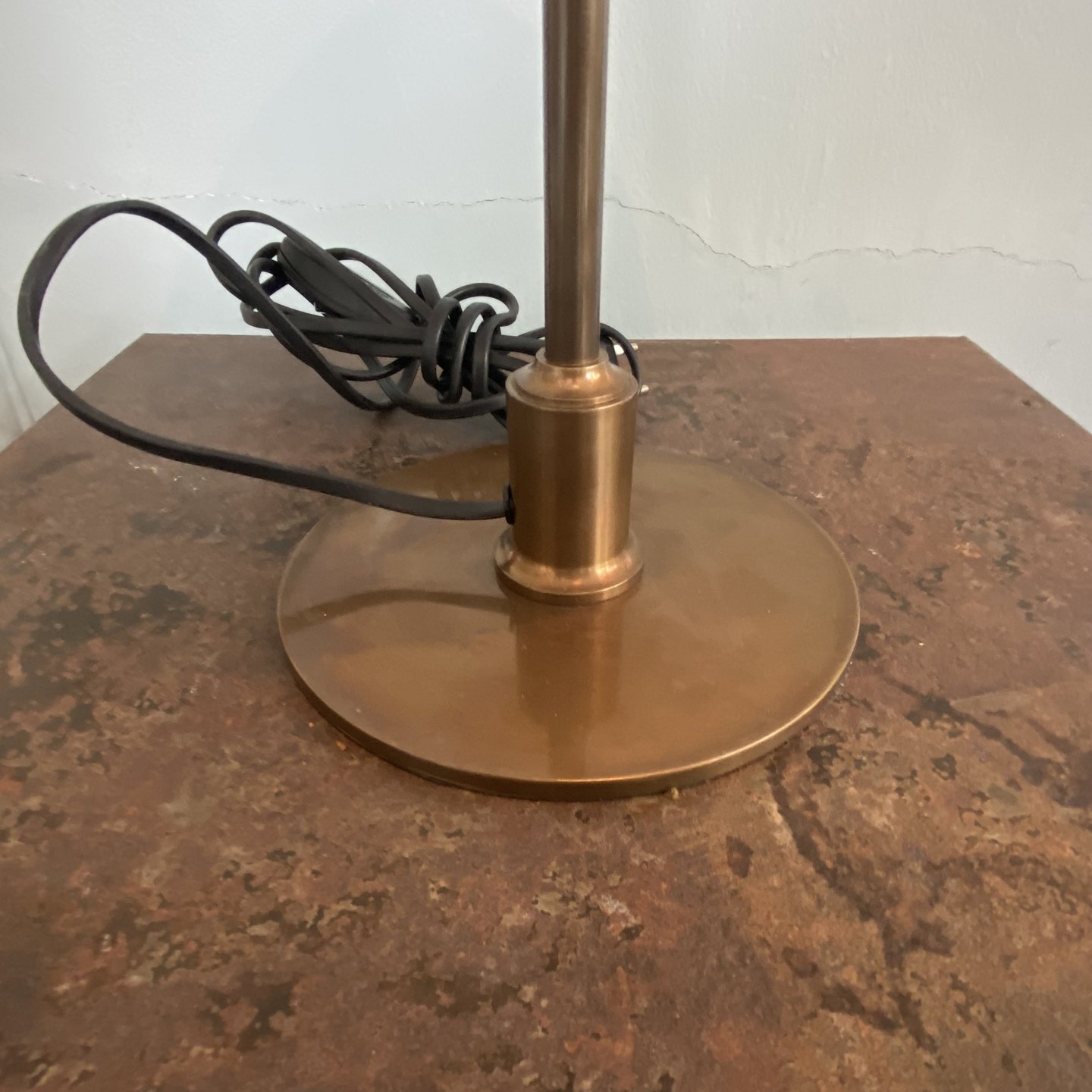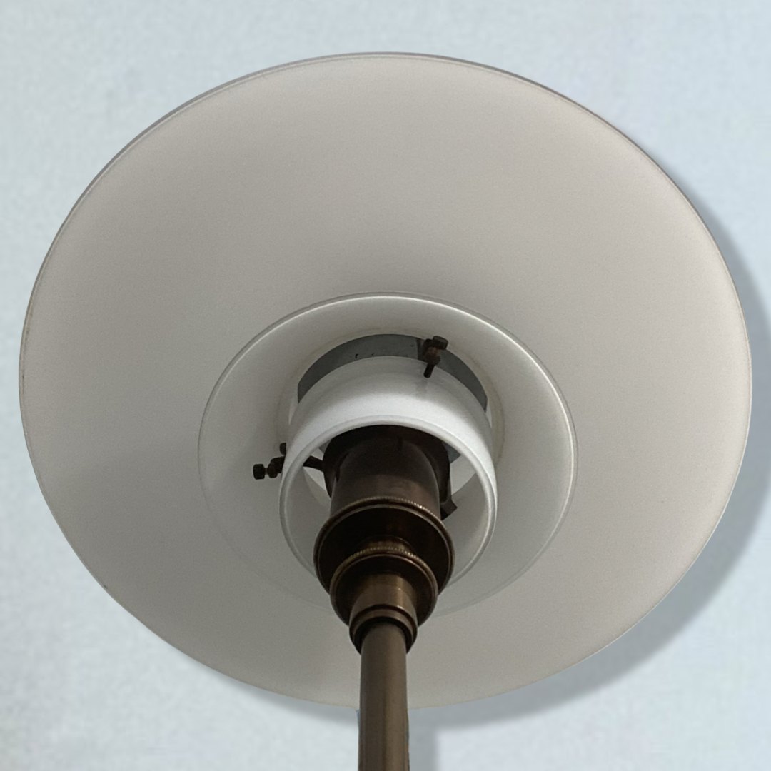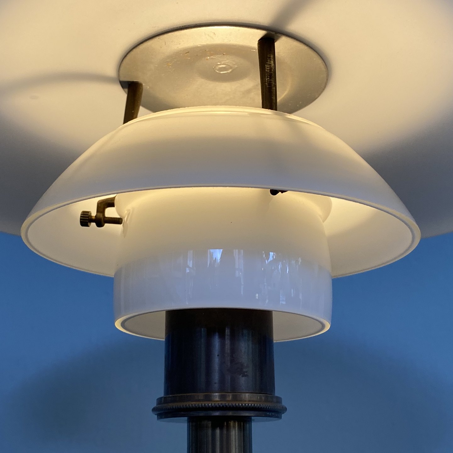 Poul Henningsen. Table lamp model TrePH, jubilee model with stem and base of bronzed brass, fitted with 3/2 shades of opal glass. Produced by Louis Poulsen in 1994 in a limited number in connection with the 100th anniversary of PH's birth. H. 45 cm