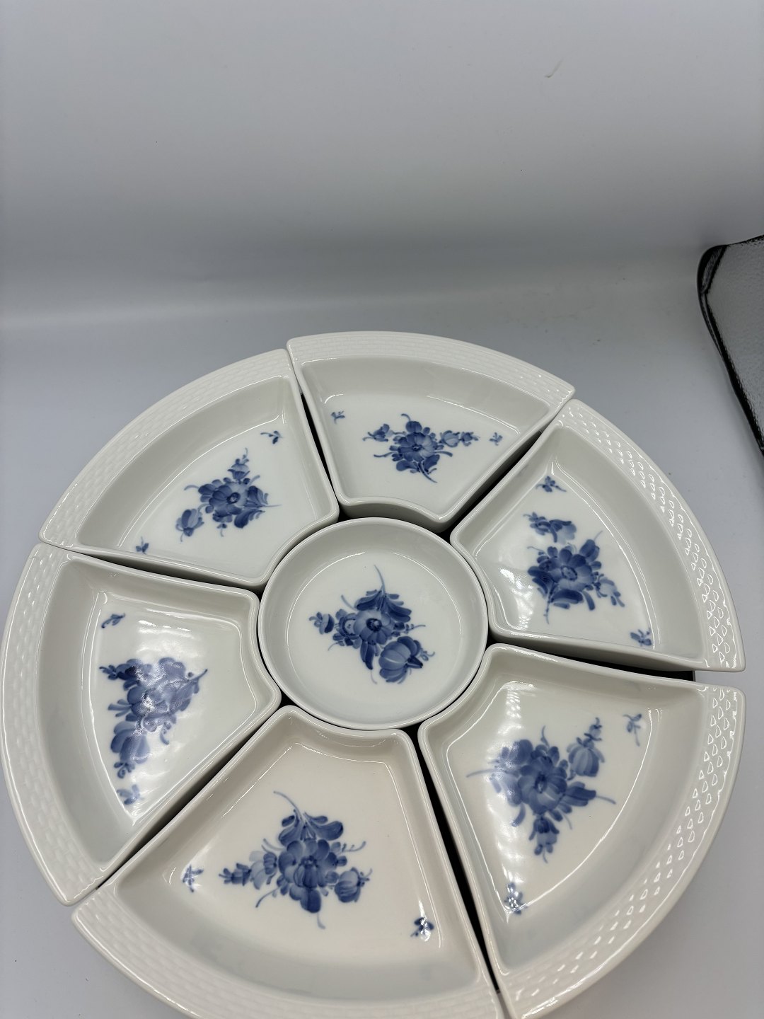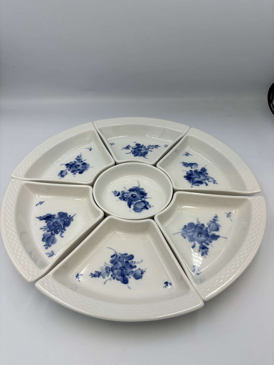 Royal Copenhagen Blå Blomst Flettet Cabaret fad MEGET Sjælden Modelnummer 8279 og 8216 1 Sortering Med dreje fod Super flot stand