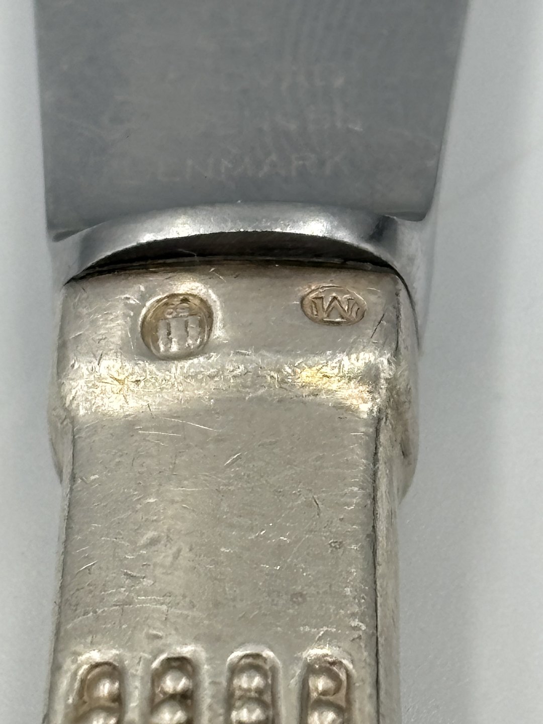 Middags kniv Champagne Bestik af Jens Harald Quistgaard 830 Sølv Flot brugt stand Længde 21 cm 2. stk. på lager